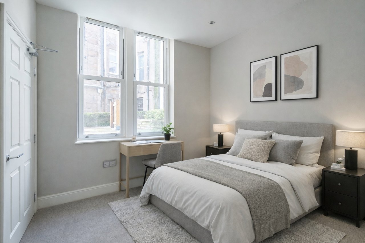 Slightly elevated from the street level this is a newly created east-facing ground-floor apartment accessed via a secure gate of Cowgate, it has a good level of privacy from passing pedestrian footfall. The apartment has been fully developed and offers 2 bedrooms a contemporarily designed open living dining and kitchen, and a bathroom with a separate shower cubicle. The location gives immediate access within walking distance to several local amenities including shops, Gallacher Retail Park, restaurants, public houses, leisure facilities, universities and bus stops. The building's conversion has created apartments that are finished to a high standard with newly fitted kitchens and bathrooms, heating is provided by Electric heating backed up by double-glazed period-style sash and case windows. Extras included are kitchen appliances and floor coverings throughout.
