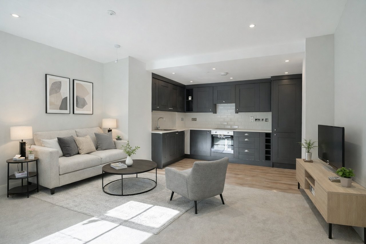 This is a newly created main door lower ground-floor apartment situated on the westmost elevation of 17-19 King Street accessed via a private staircase for the street level, it has a good level of privacy from passing pedestrian footfall. The apartment has been fully developed and offers 2 bedrooms a contemporarily designed open living dining and kitchen, and a bathroom with a separate shower cubicle. The location gives immediate access within walking distance to several local amenities including shops, Gallacher Retail Park, restaurants, public houses, leisure facilities, universities and bus stops. The building's conversion has created apartments that are finished to a high standard with newly fitted kitchens and bathrooms, heating is provided by electric heating backed up by double-glazed period-style sash and case windows. Extras included are kitchen appliances and floor coverings throughout.