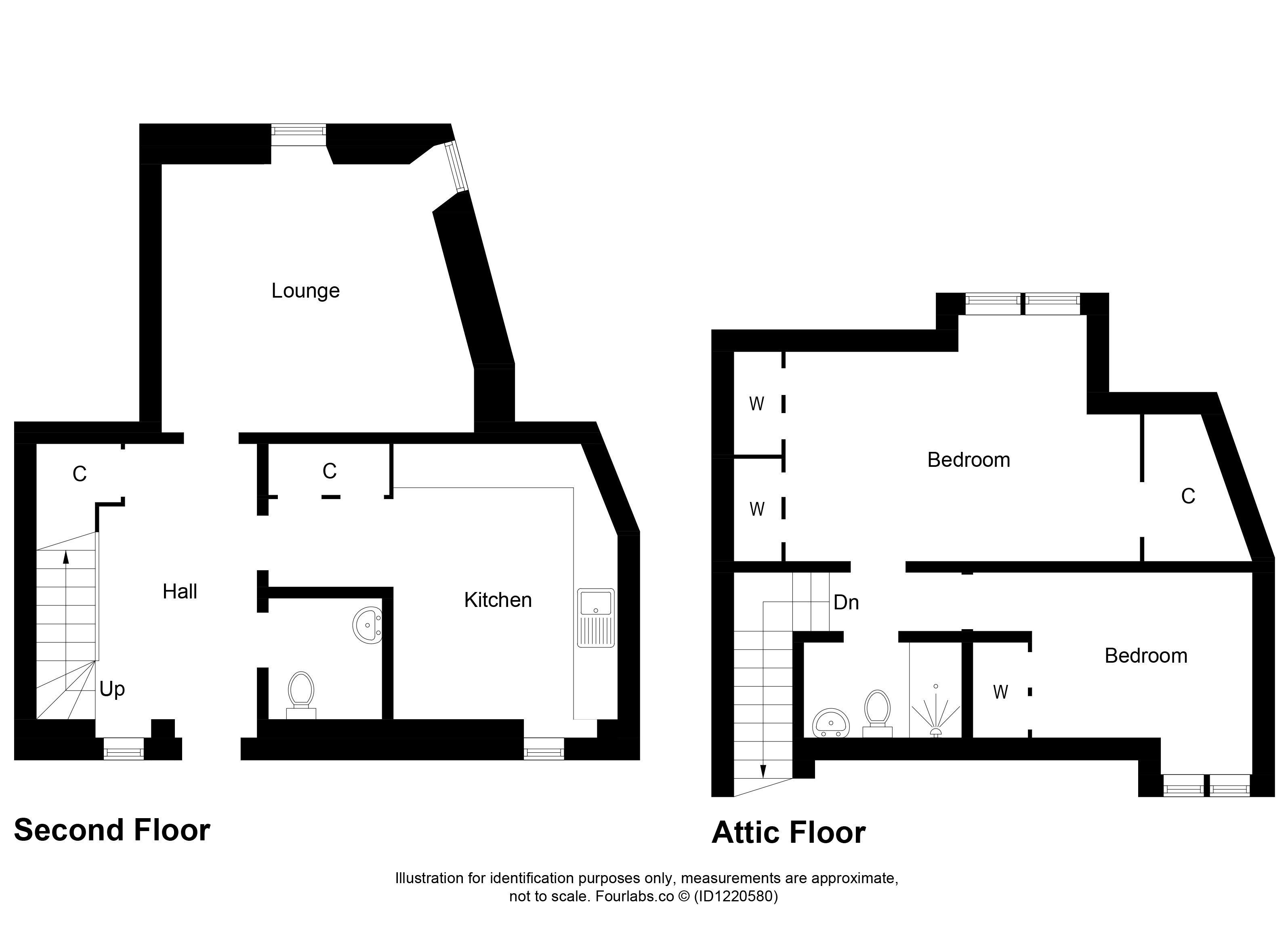 The accommodation comprises external stair to the top floor into entrance hall, Lounge, Dining Kitchen, w.c. and upstairs there are two double bedrooms and shower room. This property would be an ideal family home or indeed as a rental investment with communal garden to the rear and storage sheds.
