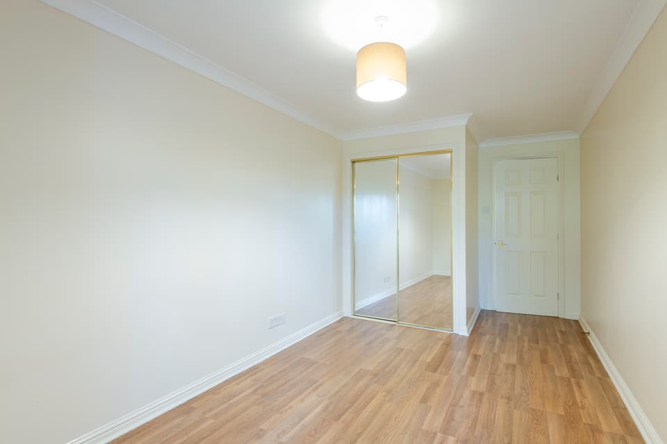 There are two double bedrooms, both featuring laminate flooring and integrated mirrored wardrobes. The bathroom is partially tiled and fitted with a modern three-piece suite. The property benefits from double glazing, gas central heating, secure entry, and plentiful storage throughout. Included in the sale are the blinds, floor coverings, washing machine, and fridge freezer.