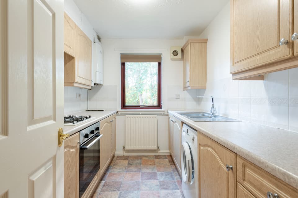 The accommodation is bright and spacious throughout. Upon entering, you are welcomed by an entrance vestibule leading into a hallway with useful storage. The dual-aspect lounge is generously proportioned, providing ample space for both relaxing and dining. The kitchen is fitted with a range of wall and base units and includes an oven, hob, and extractor fan.