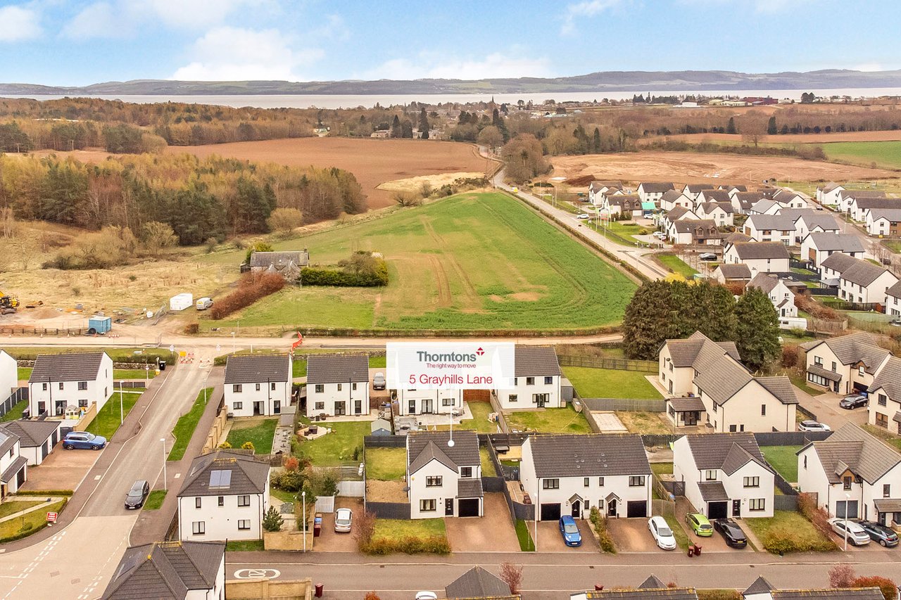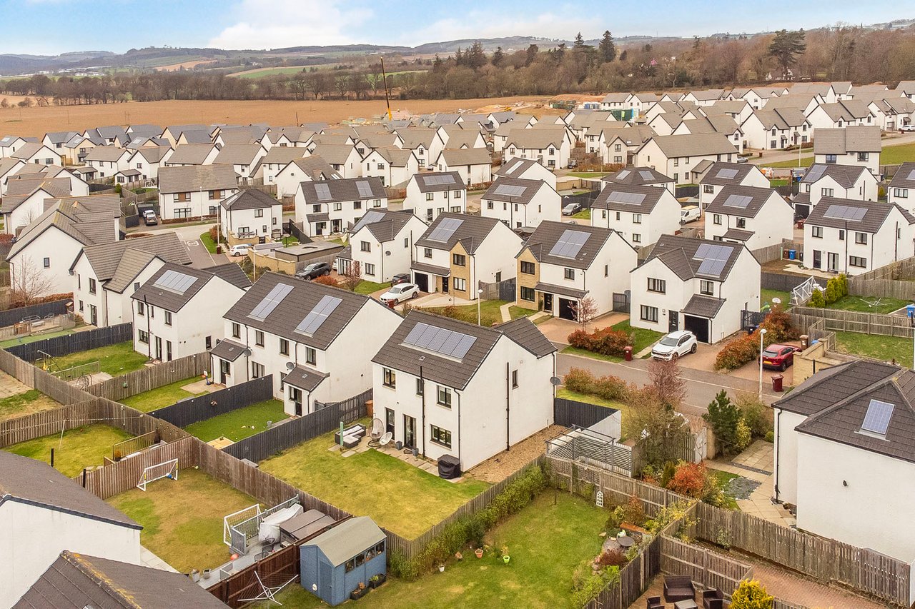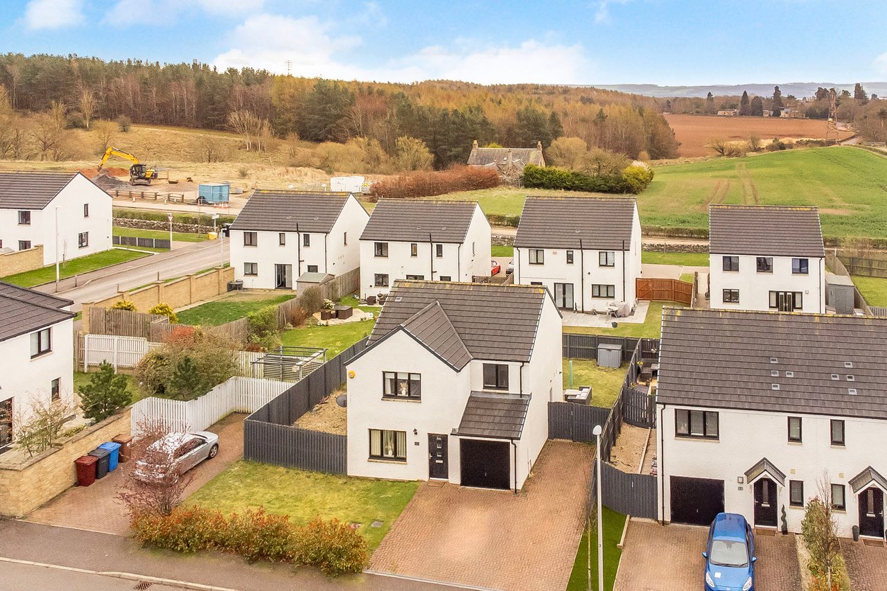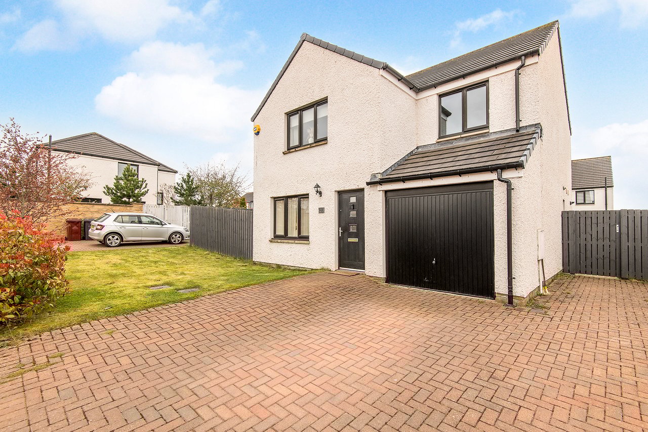 This elegant detached home forms part of a modern residential development in Dundee, offering beautifully balanced and versatile accommodation. The property opens with a welcoming hall and stairwell, leading to a spacious living room and a bright kitchen/dining area with patio doors opening onto the garden, alongside a practical utility room and guest WC. The upper level hosts a generous principal bedroom with an en-suite, three further bedrooms (two with built-in storage), and a stylish bathroom with additional storage. Externally, the home benefits from private lawned gardens, a multi-vehicle driveway with garage parking. Extras: All fitted floor and window coverings, light fittings, and integrated appliances are included.