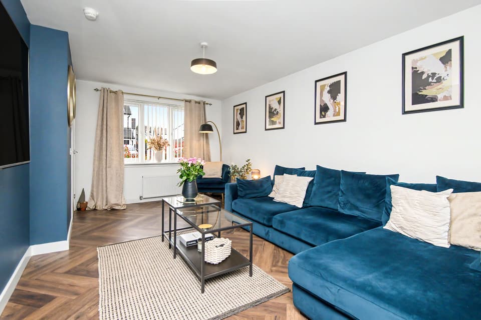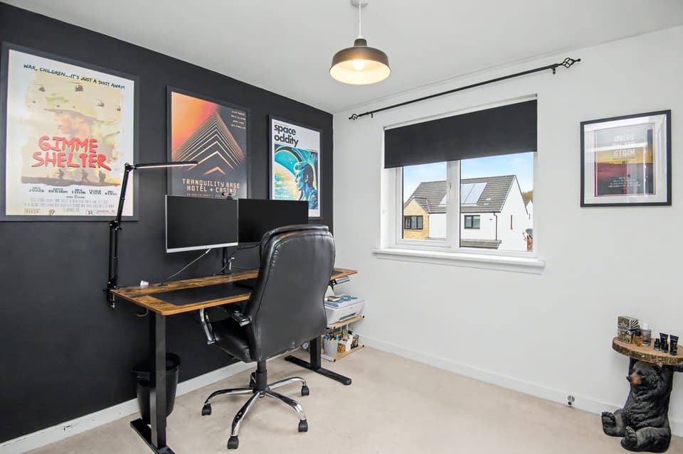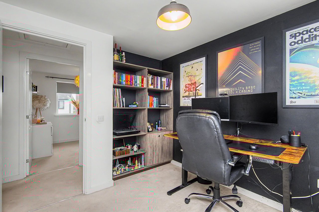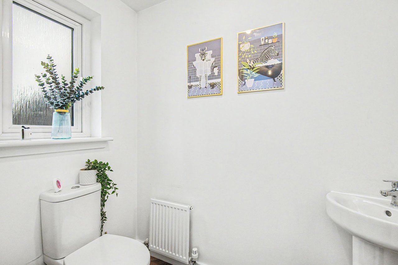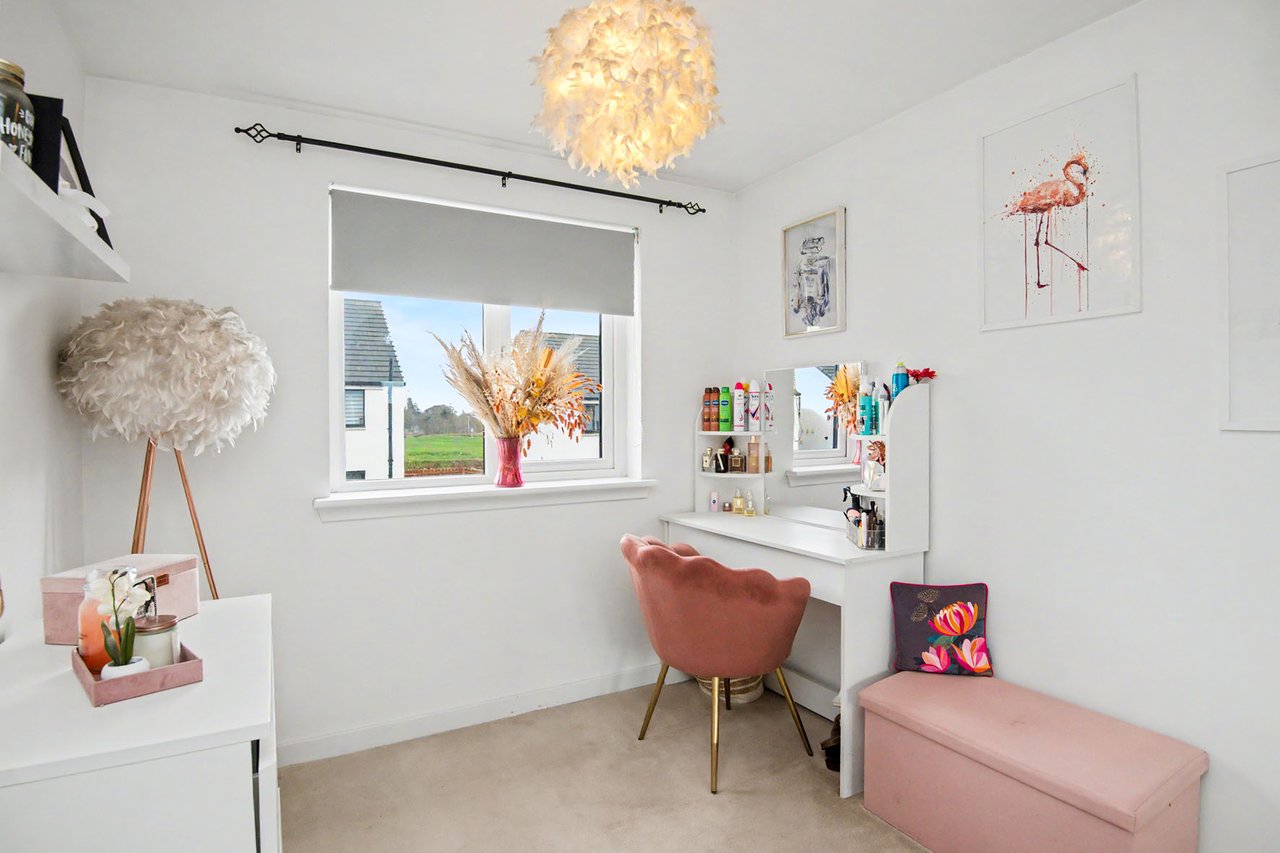 This elegant detached home forms part of a modern residential development in Dundee, offering beautifully balanced and versatile accommodation. The property opens with a welcoming hall and stairwell, leading to a spacious living room and a bright kitchen/dining area with patio doors opening onto the garden, alongside a practical utility room and guest WC. The upper level hosts a generous principal bedroom with an en-suite, three further bedrooms (two with built-in storage), and a stylish bathroom with additional storage. Externally, the home benefits from private lawned gardens, a multi-vehicle driveway with garage parking. Extras: All fitted floor and window coverings, light fittings, and integrated appliances are included.