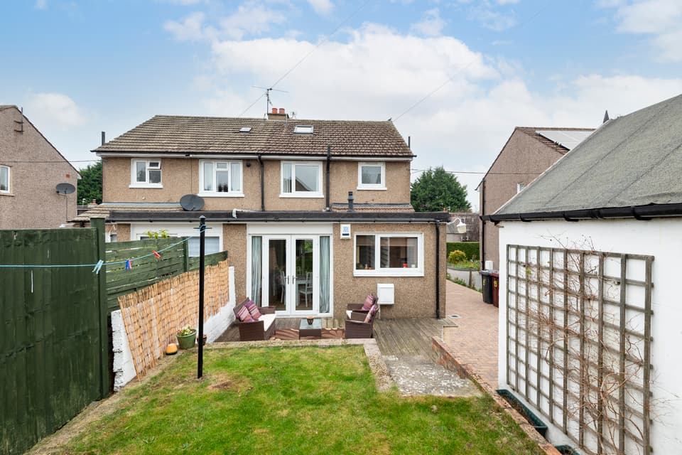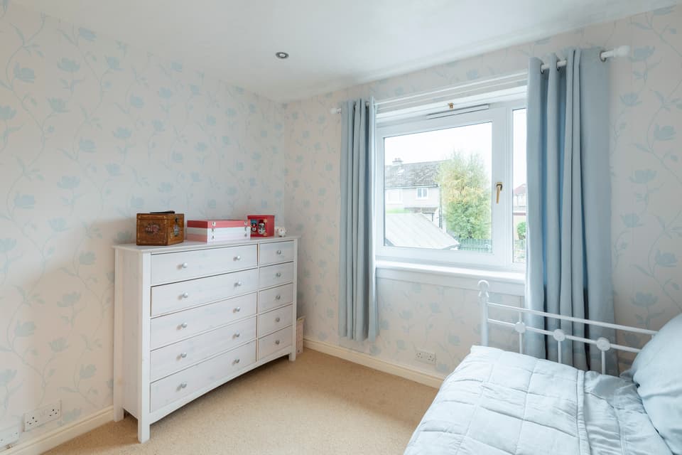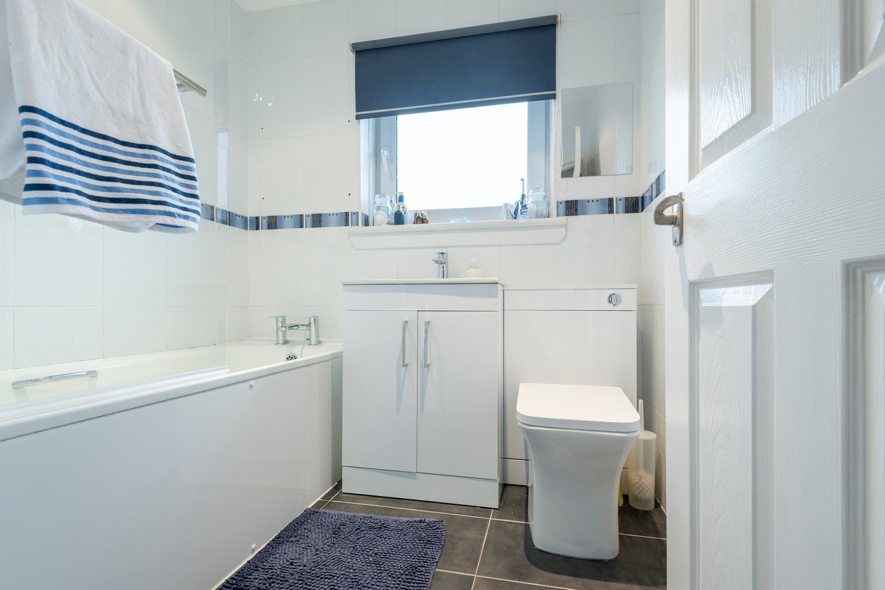 The property itself offers bright, well-presented and comfortable accommodation throughout, perfectly suited to a range of purchasers. The internal layout comprises a welcoming entrance hallway leading to a spacious and naturally bright lounge with ample space for both living and dining furniture. The modern kitchen is fitted with a range of wall and base units, providing generous worktop and storage space. The family bathroom is fitted with a modern three-piece suite. On the upper level, there are two well-proportioned double bedrooms, both offering built-in storage.