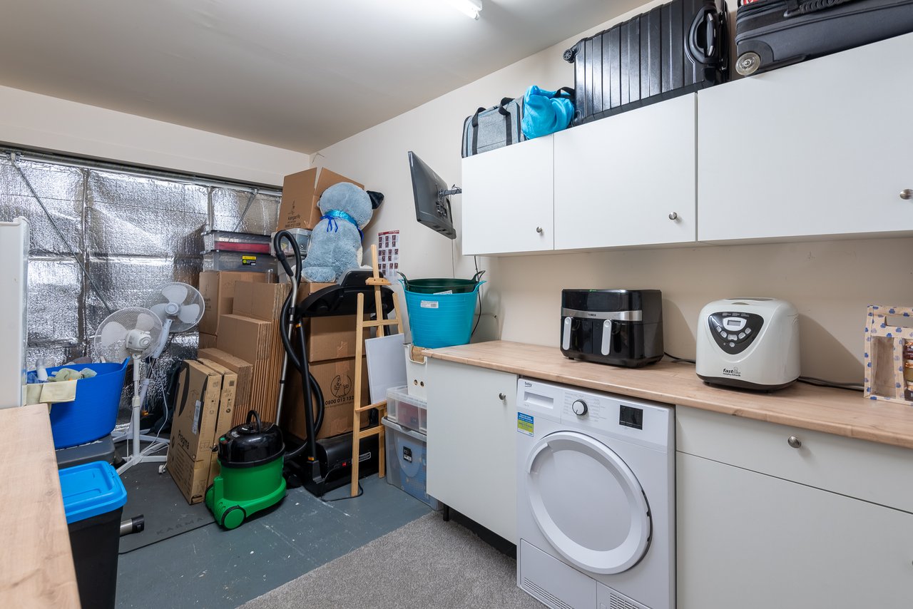 A private driveway with garage offers convenient off-street parking. The garage is currently used as a utility/store room but can be converted back to use as garage.