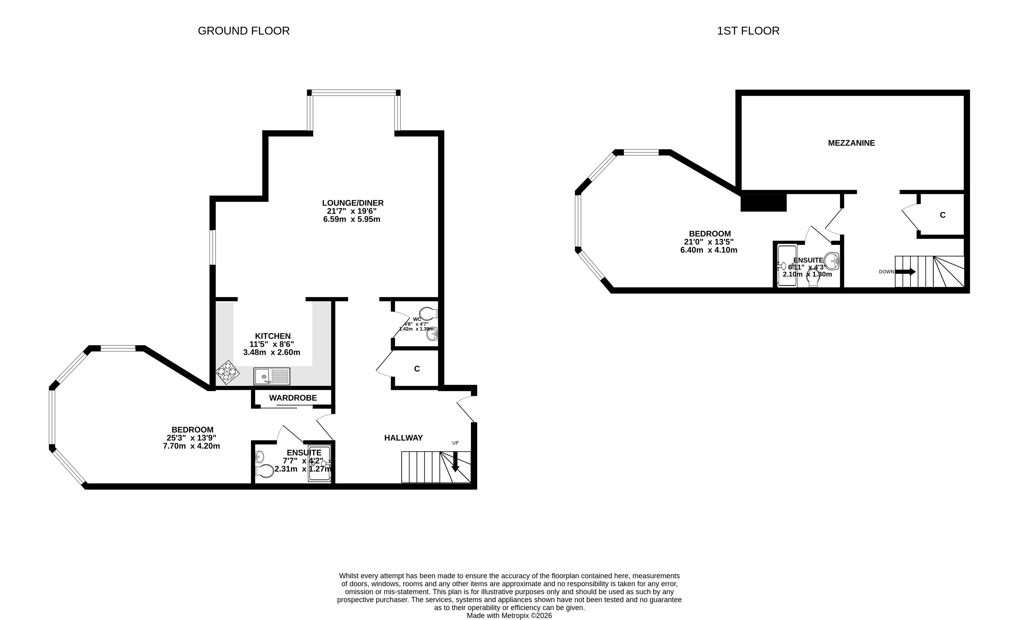 The property offers spacious accommodation which comprises: spacious open plan lounge/ kitchen/ dining room, WC, two double bedrooms both enjoying en-suite facilities and built in storage.