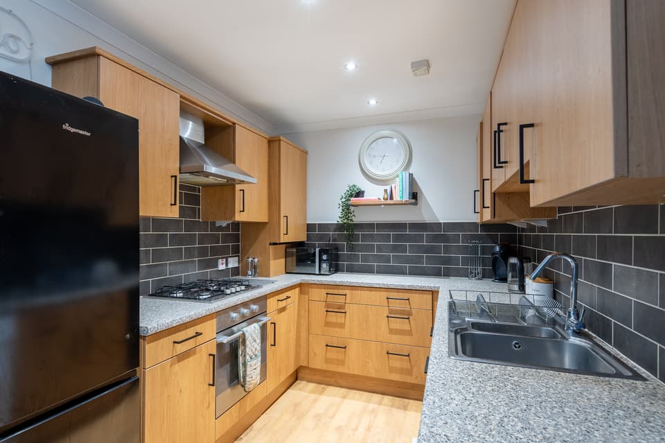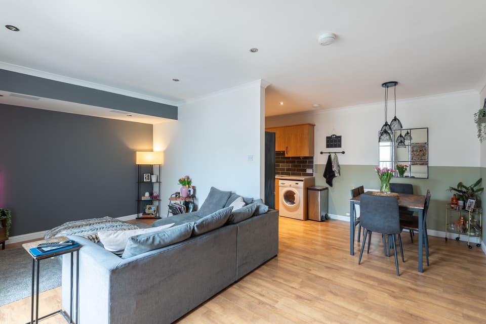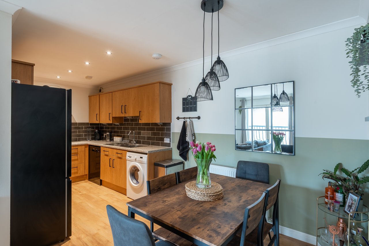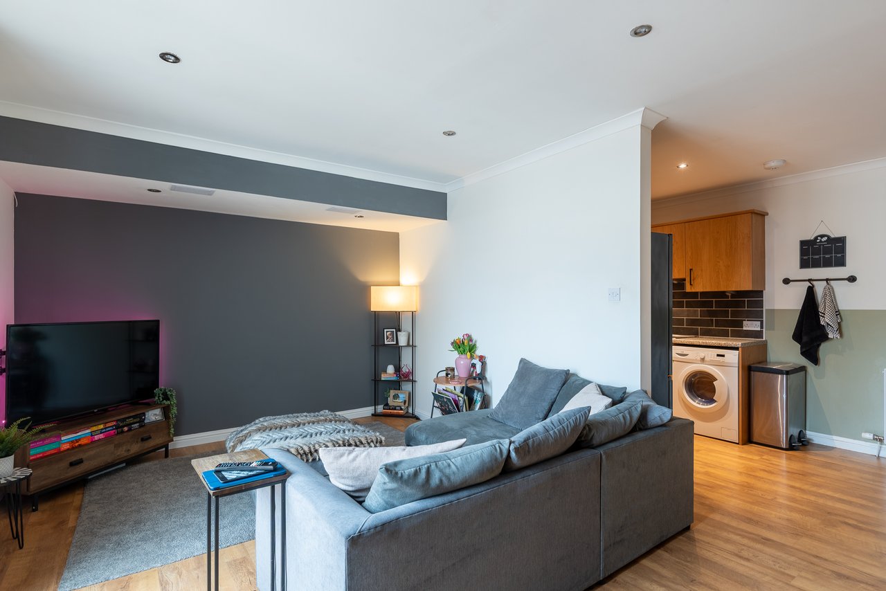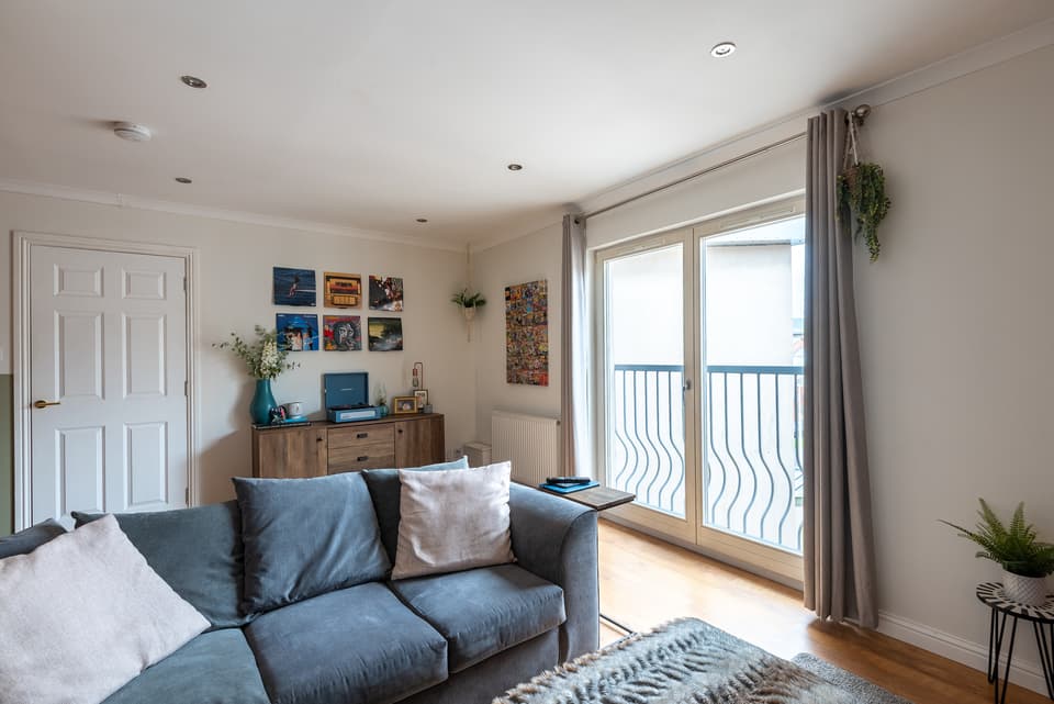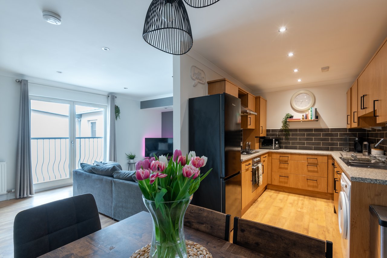 The layout comprises a bright lounge with Juliet balcony, open plan to a modern kitchen/dining area complete with oven, hob, and extractor. There are two well appointed double bedrooms and a stylish bathroom fitted with a three piece suite and shower over bath.