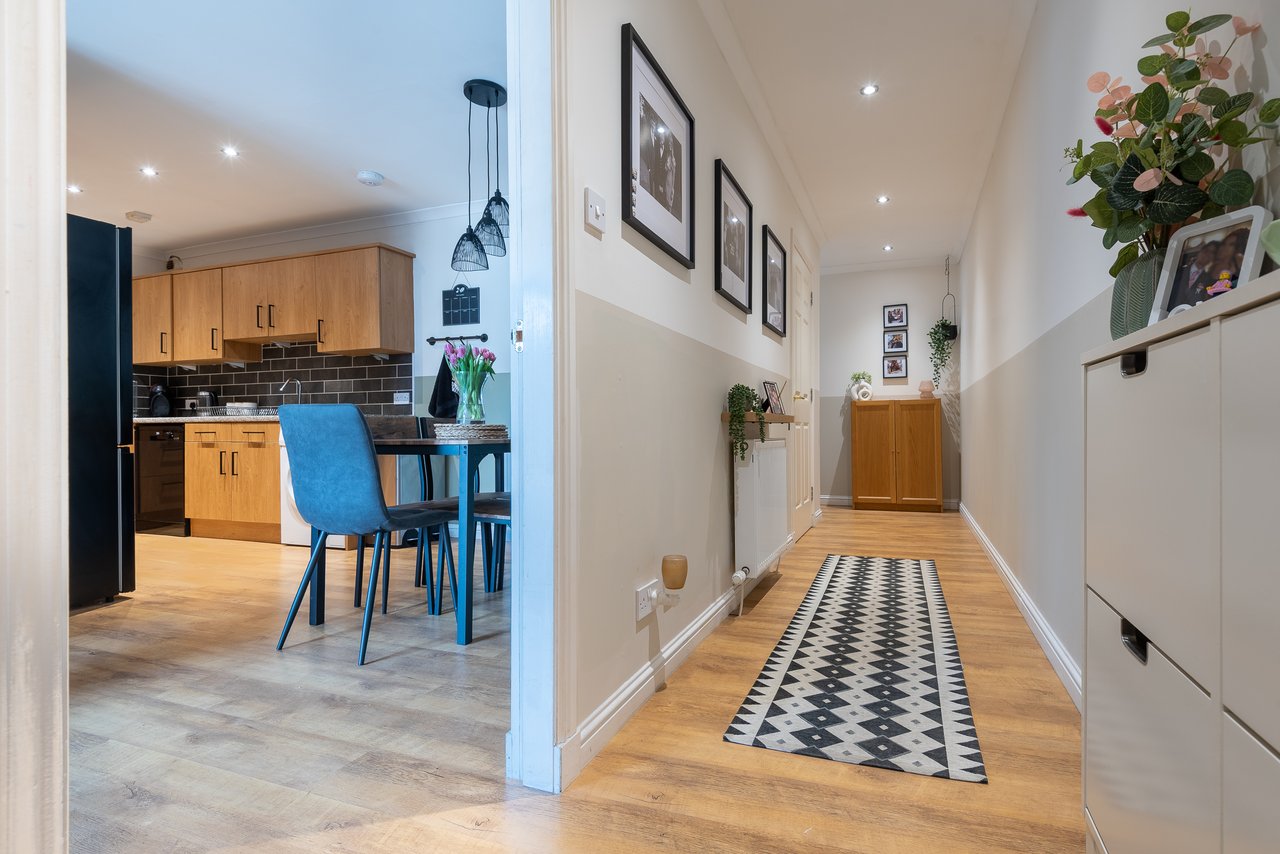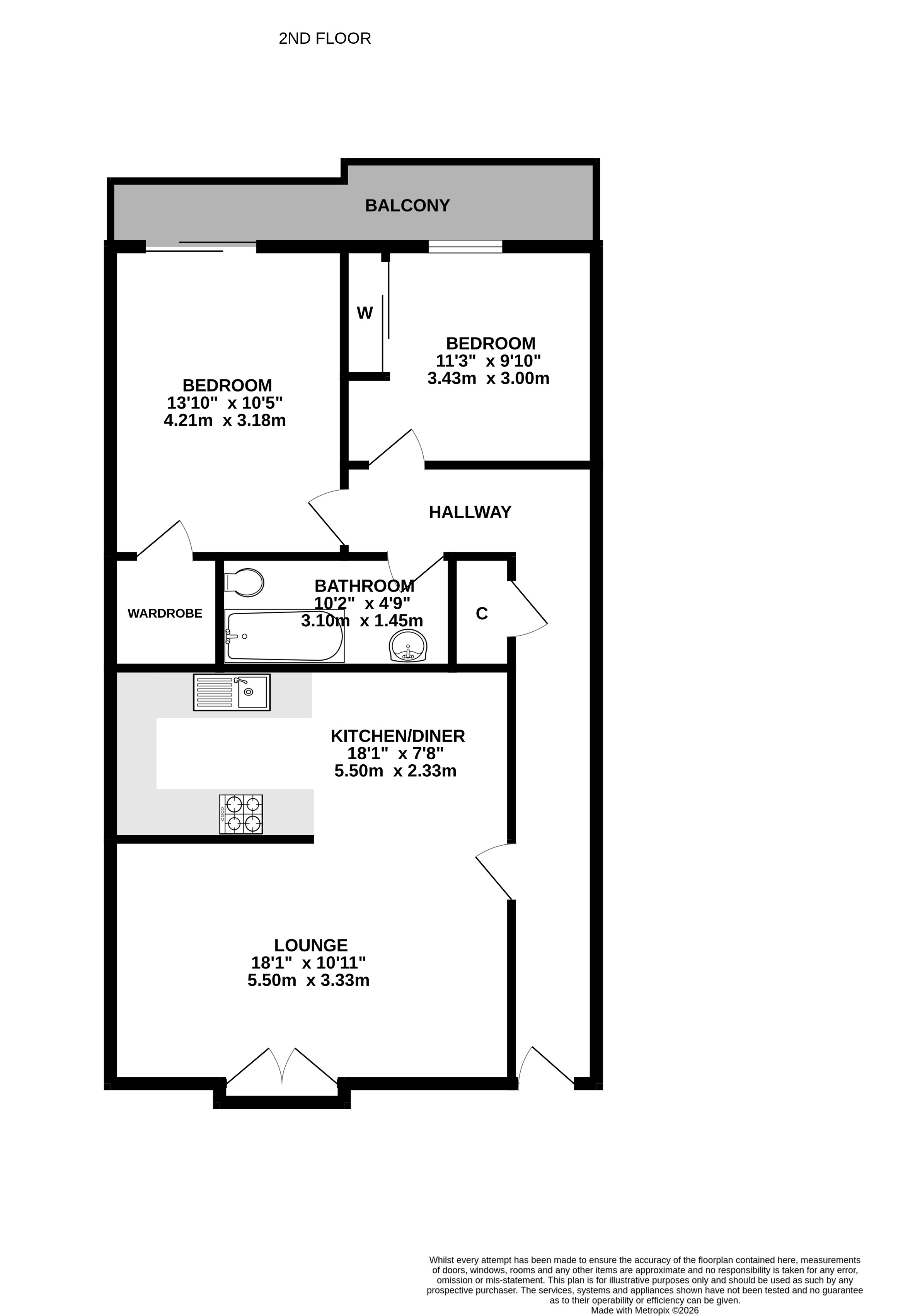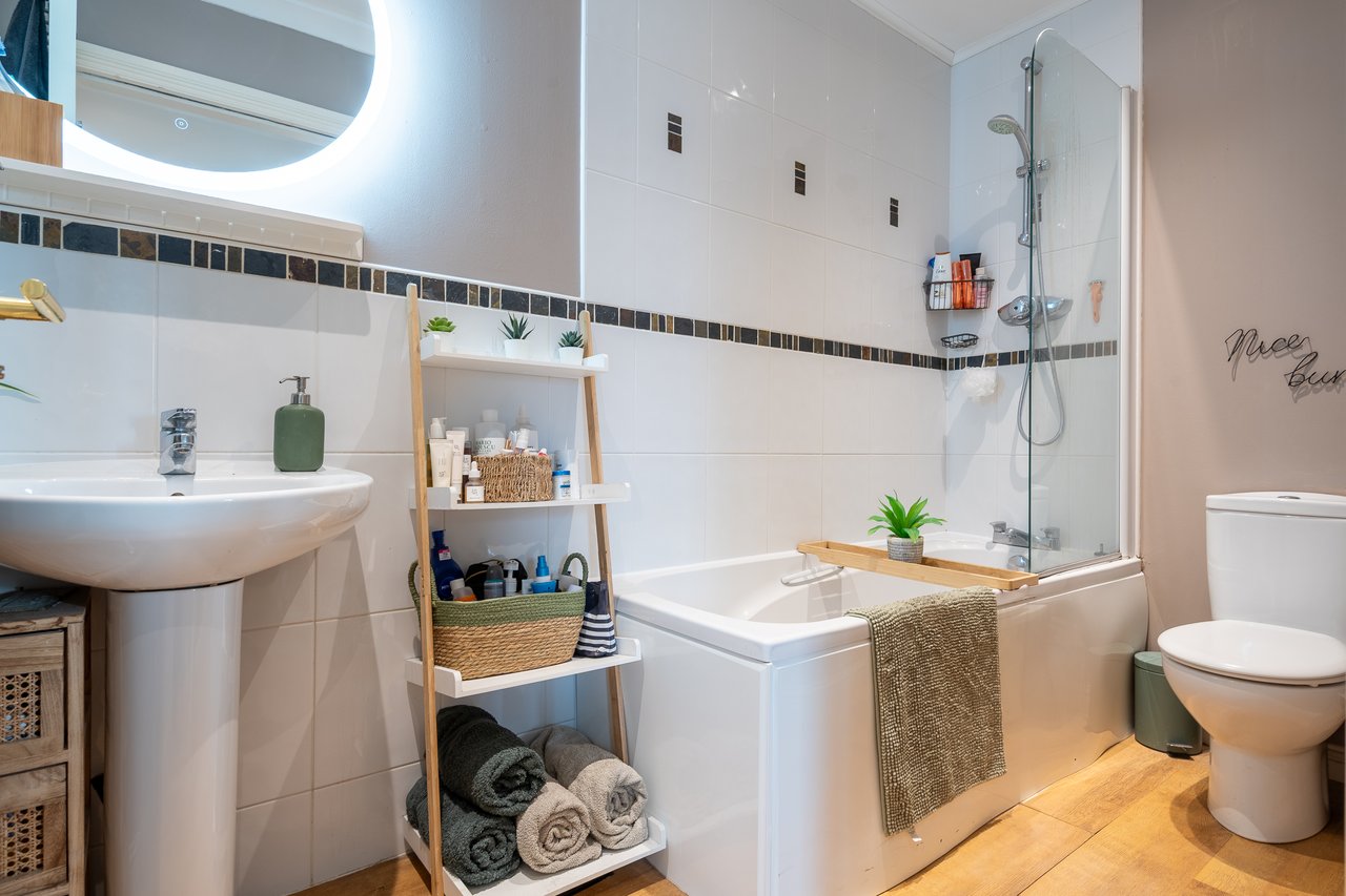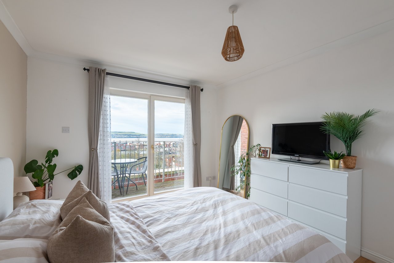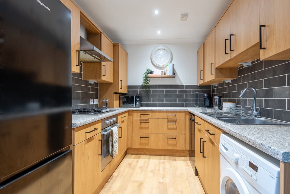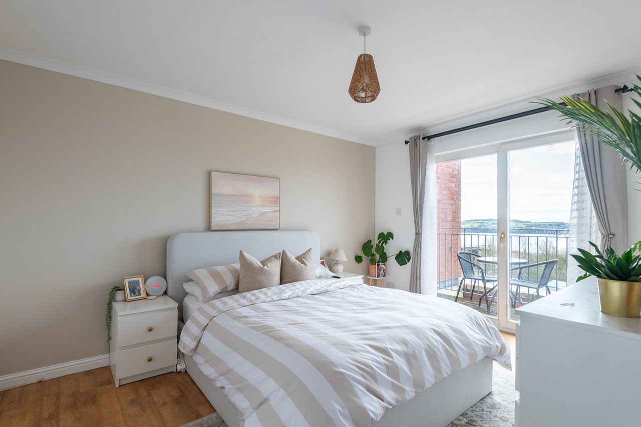 The layout comprises a bright lounge with Juliet balcony, open plan to a modern kitchen/dining area complete with oven, hob, and extractor. There are two well appointed double bedrooms and a stylish bathroom fitted with a three piece suite and shower over bath.