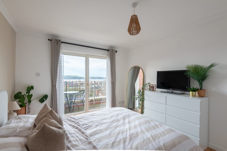 A standout feature is the full length outdoor balcony, extending across both bedrooms and providing valuable additional outdoor space.