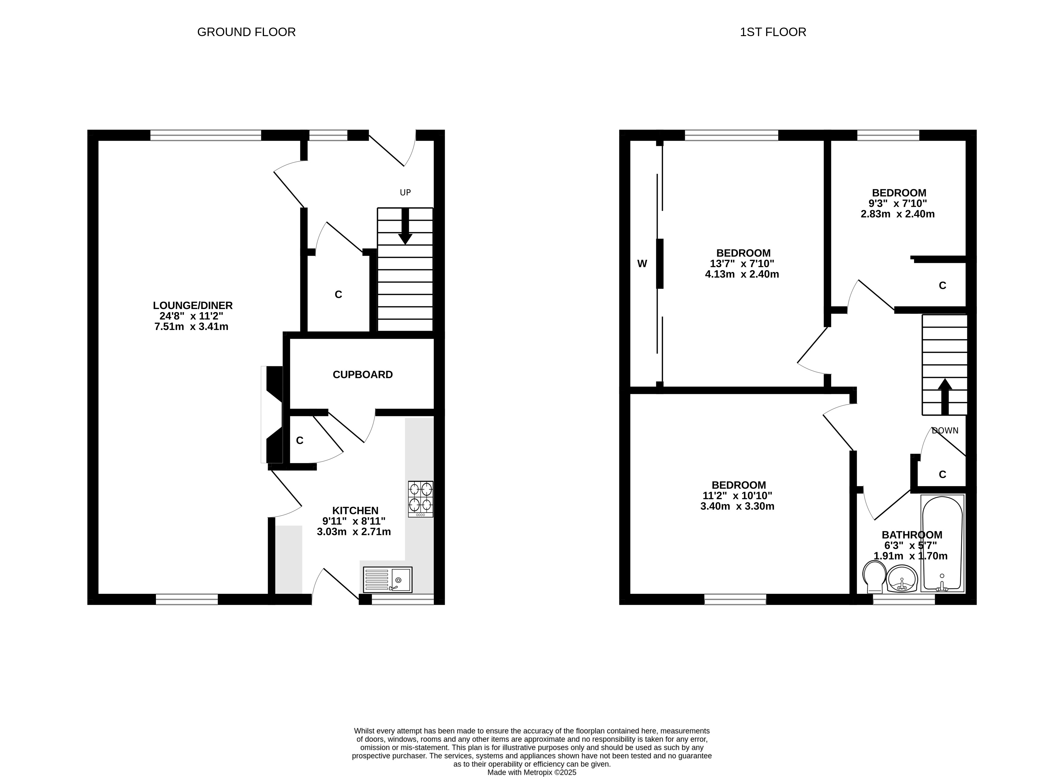 - Bedroom: 2.44m x 2.90m (8' 0" x 9' 6")