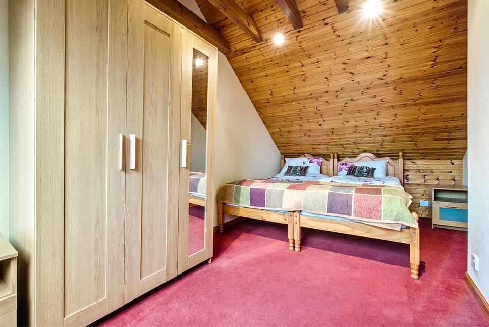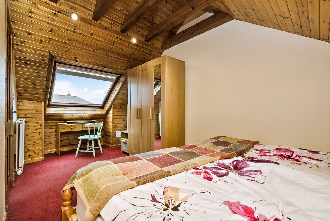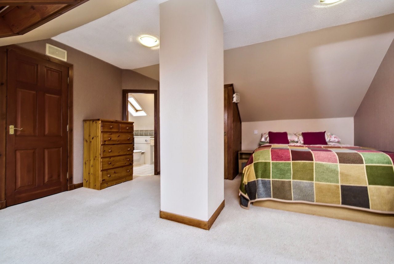 Sun-facing skylit main bedroom with wardrobe en-suite