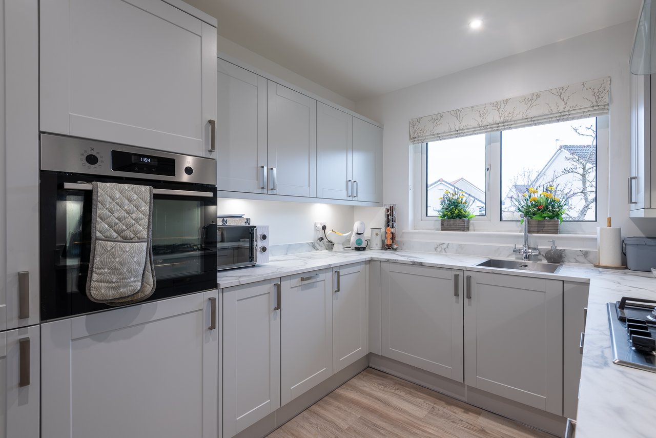 This well presented home offers spacious accommodation on one level comprising hall with two storage cupboards, hatch giving access to attic space, lounge with bay over looking garden, ample space for occasional furniture, door leading to kitchen, fitted kitchen with both wall mounted and base units, oven, hob, extractor, two well appointed double bedrooms, bathroom fitted with three piece suite. Attributes include double glazing and gas central heating.