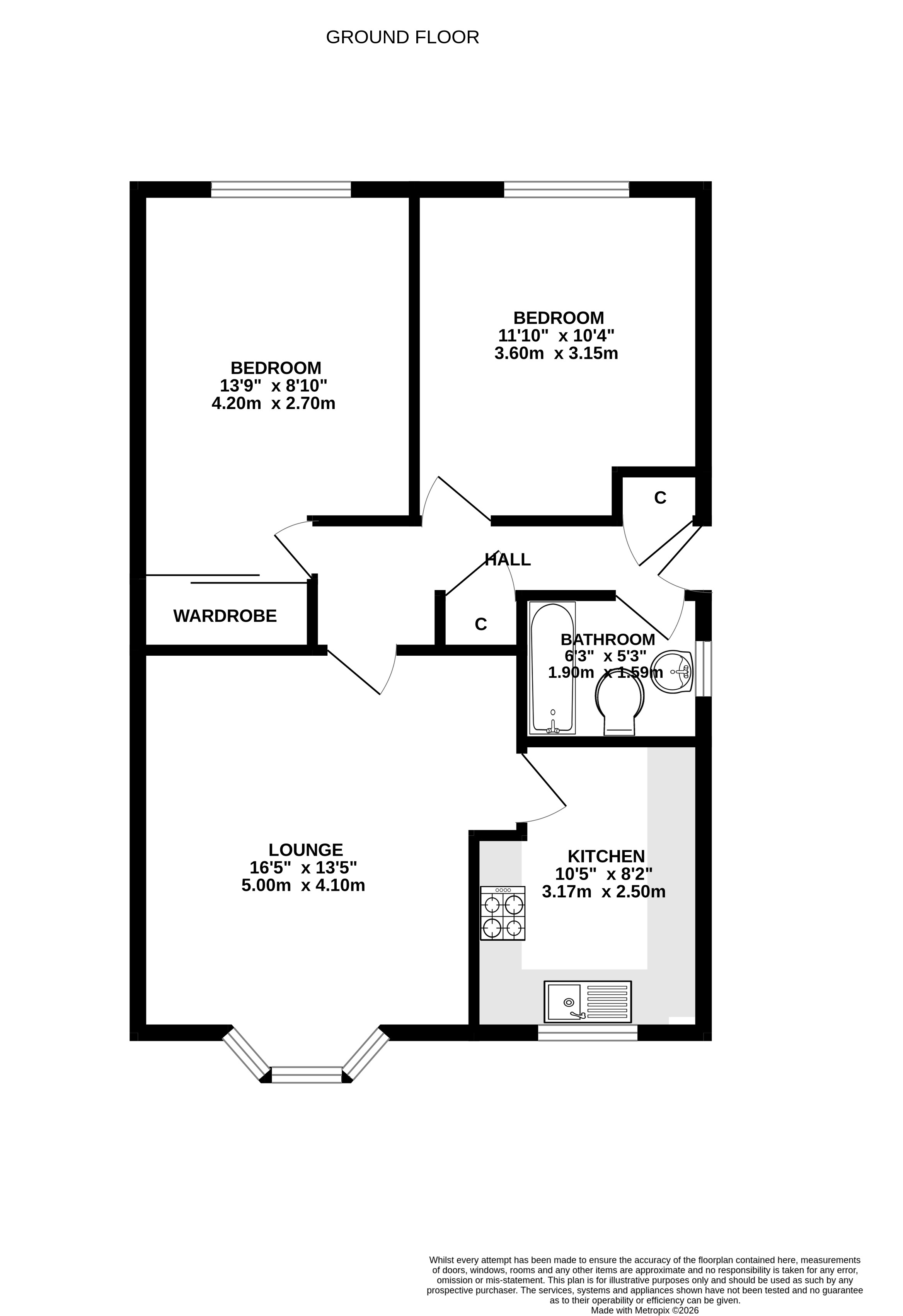 2 Bedrooms & Bathroom