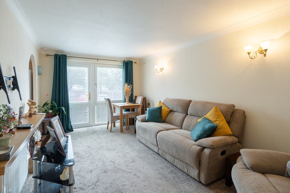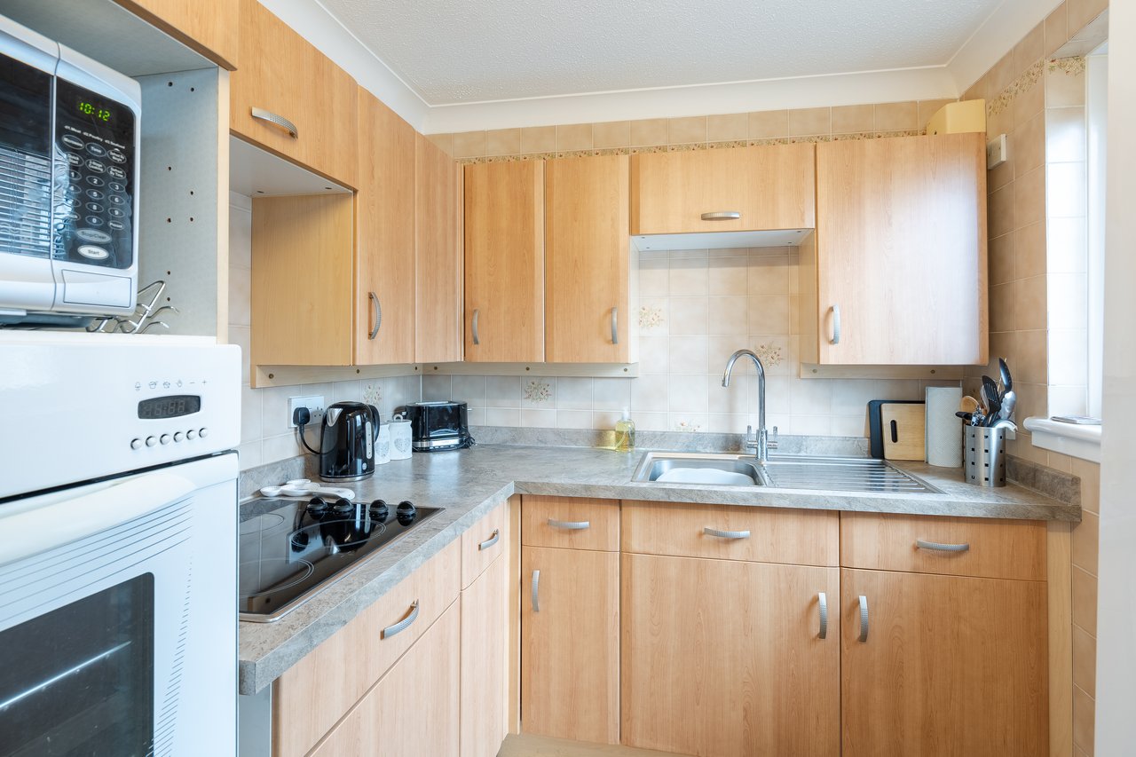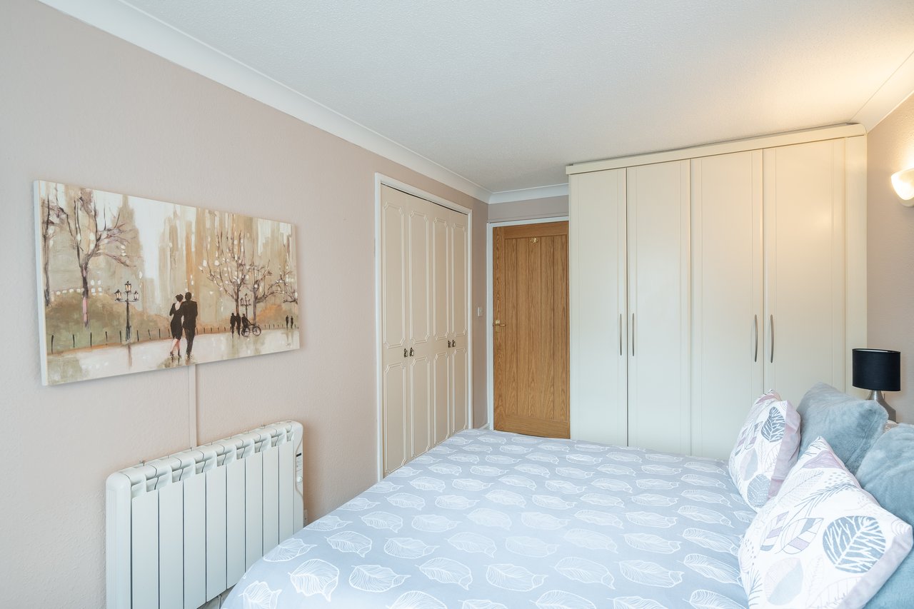 Accommodation comprises; hallway, fitted kitchen with feature archway, offering a range of wall and base units, spacious lounge/dining room with door leading to garden area, shower room with tiled walls and vanity unit, a large double bedroom with many integrated wardrobes. Practical attributes includes double glazing and electric heating. The purpose built attractive complex has a guest suite, residents' lounge, fully equipped laundry, lift access, warden facility, intercom system, attractive communal gardens and communal residents parking. Age restrictions apply.