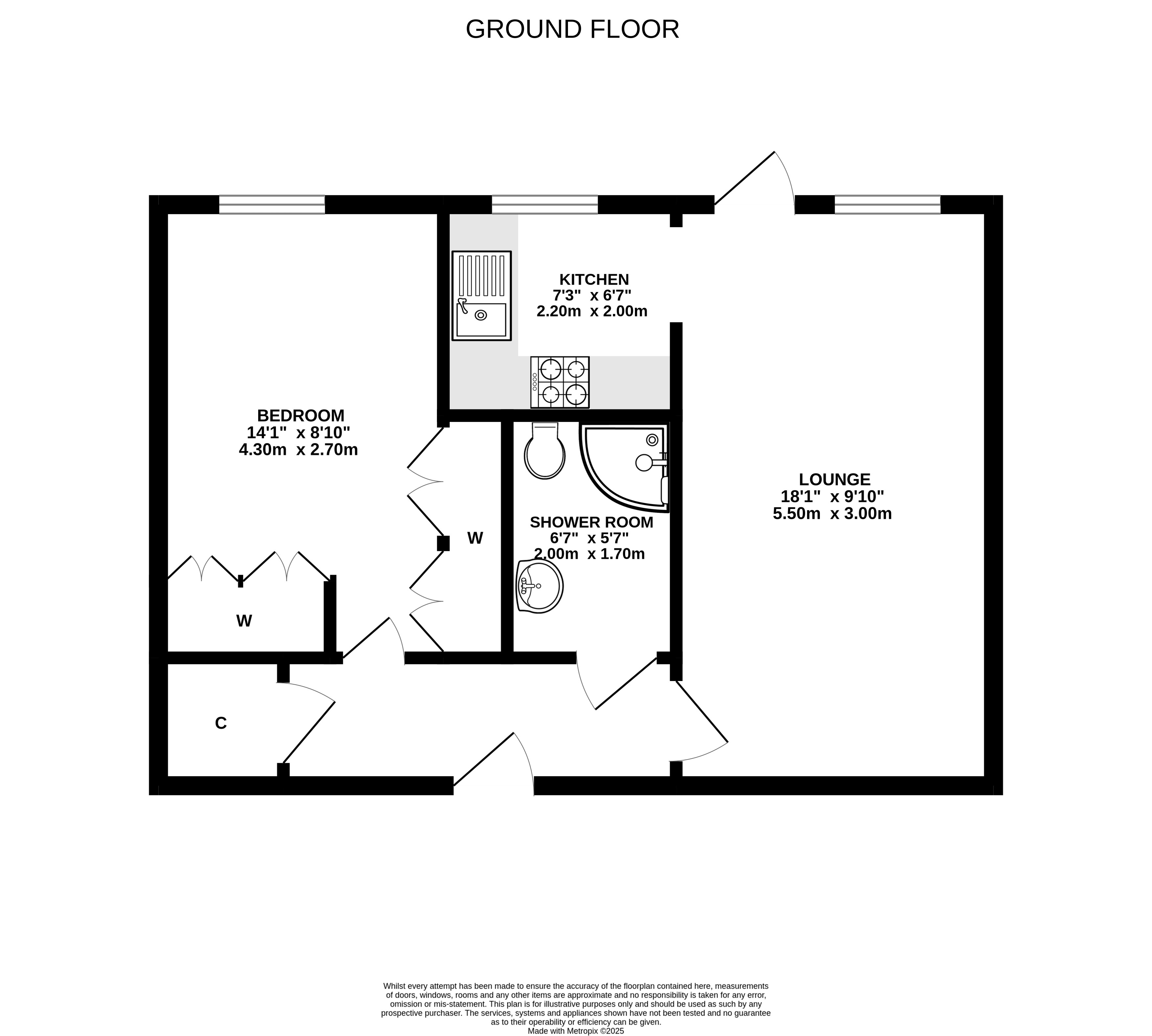 - Shower Room: 6' 7" x 5' 7" (2.01m x 1.70m)