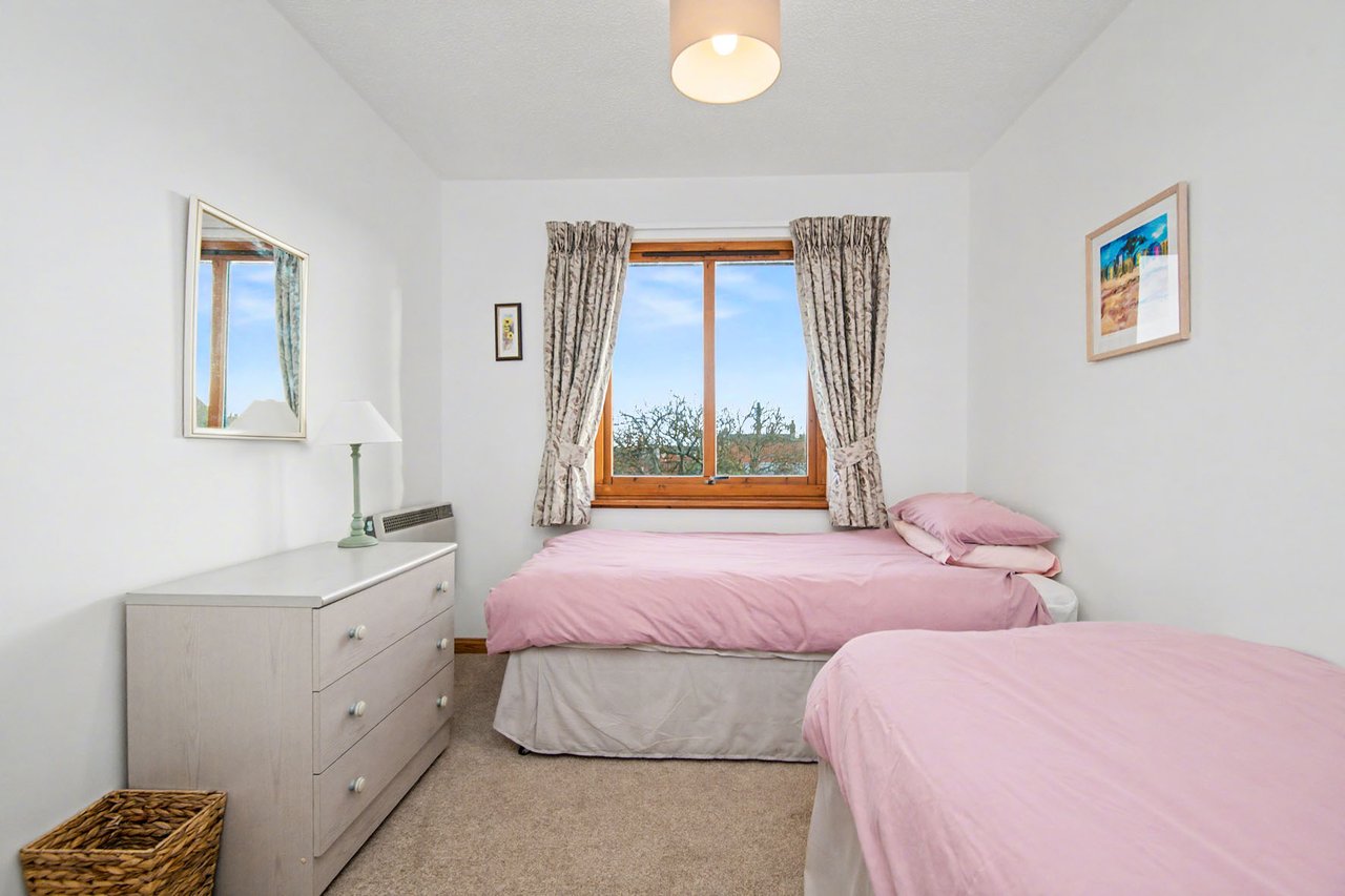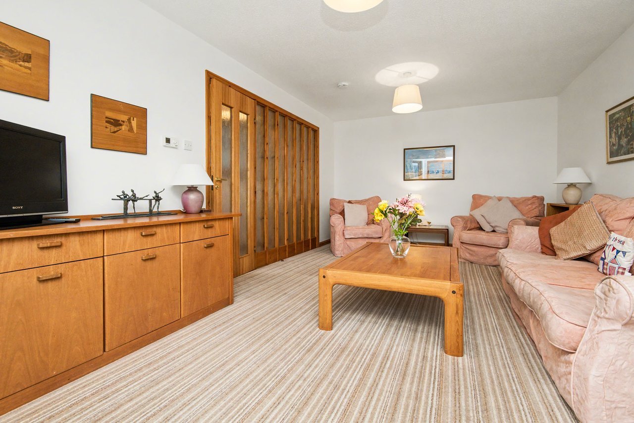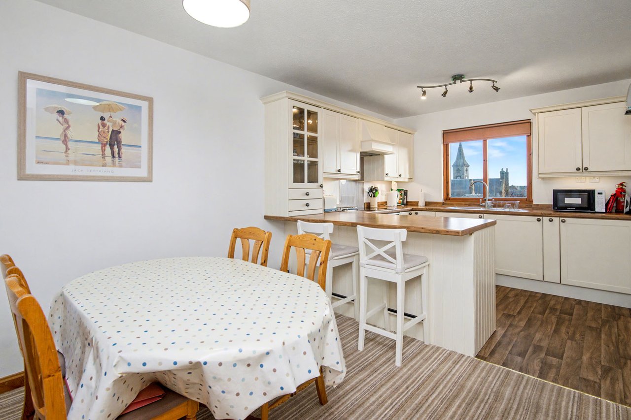 Introducing a bright first-floor main-door apartment in the sought-after coastal village of Elie, overlooking the golf course and within easy reach of the beach. The home comprises a spacious west-facing living room, an interconnected dining room and breakfasting kitchen with fitted units, two double bedrooms, and a bathroom with a shower-over-bath, a wall-hung mirror and vanity storage. Externally, 4 Links Court benefits include a communal lawned garden with drying area and seating space, and private allocated parking.