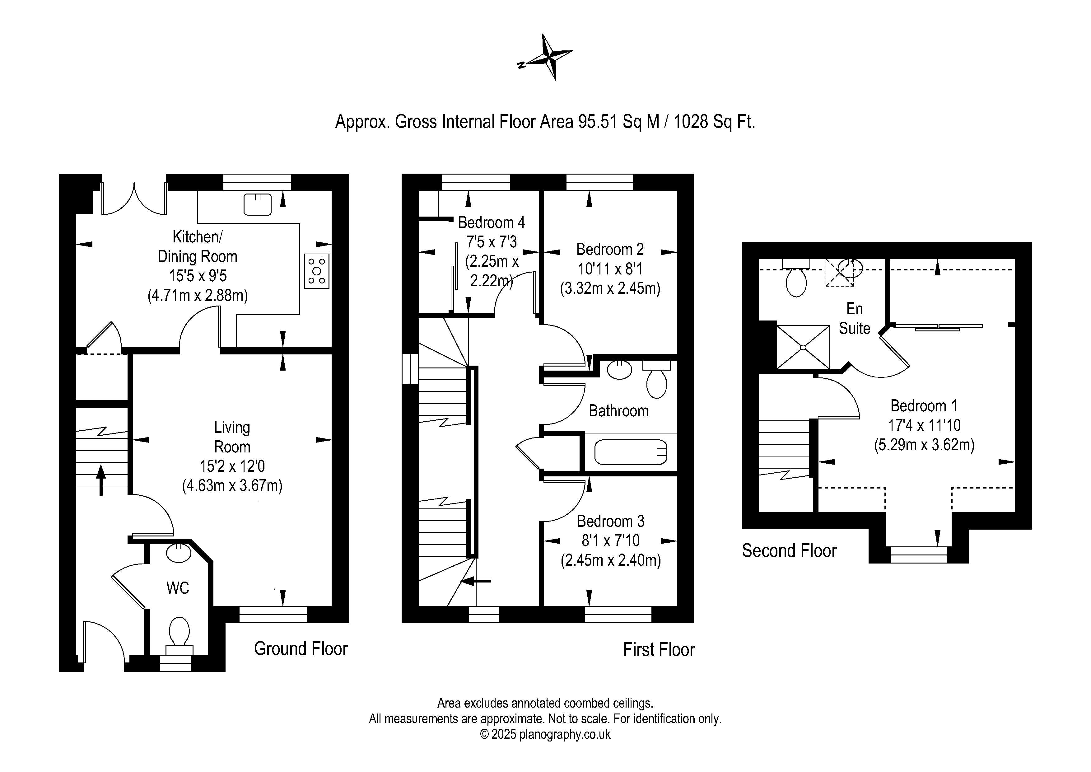 The first floor comprises three bedrooms, one with built-in storage, and a contemporary family bathroom. The top floor is entirely dedicated to the luxurious principal bedroom, complete with generous fitted wardrobes and a stylish en-suite shower room.