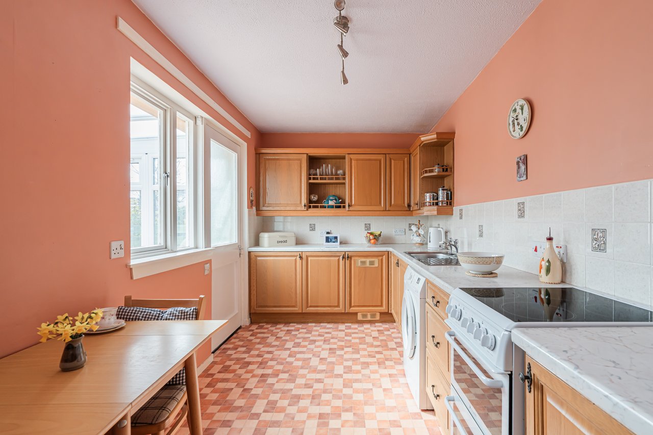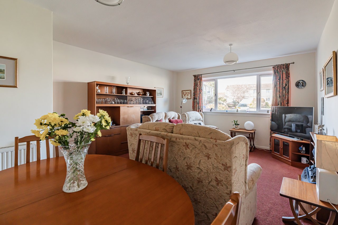 23 Alnwickhill Park is a well-presented two bedroom lower flat enjoying an attractive open outlook over well-maintained communal amenity ground. The accommodation comprises a vestibule with large boiler cupboard leading to a welcoming hall with a large storage cupboard, a bright sitting/dining room with open views, a breakfasting kitchen with conservatory off, two double bedrooms (one with built-in wardrobes), and a shower room. The property benefits from gas central heating and double glazing. Externally there is a front garden and a large sunny, low-maintenance rear garden with a separate area for clothes drying. A garage and private parking space are also included, and residents contribute £65 payable to the Alnwickhill Association per annum towards maintenance of communal grass and trees within the development.