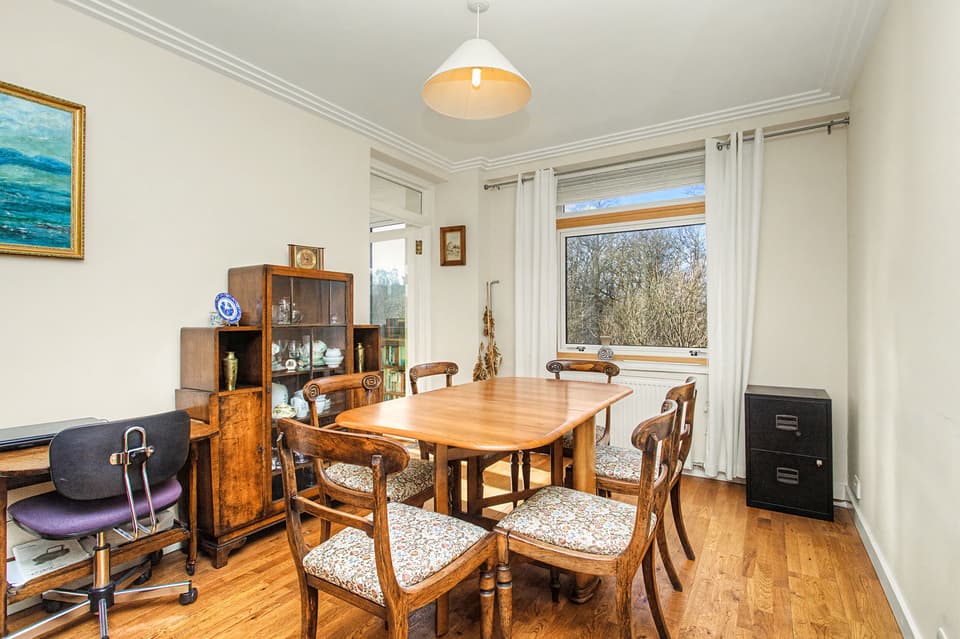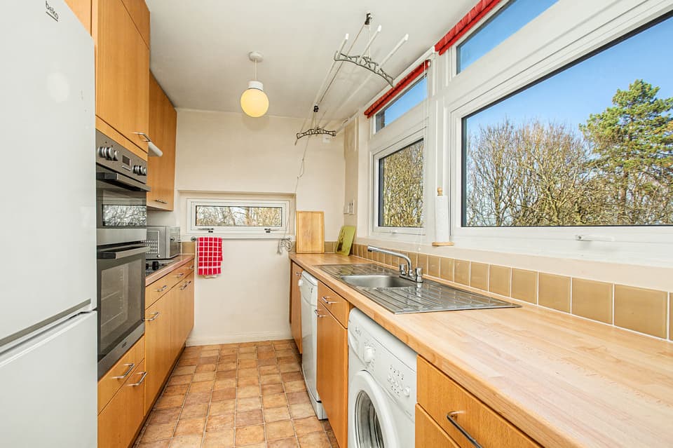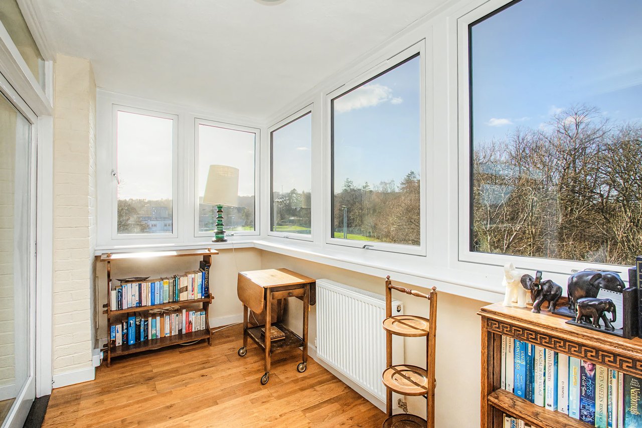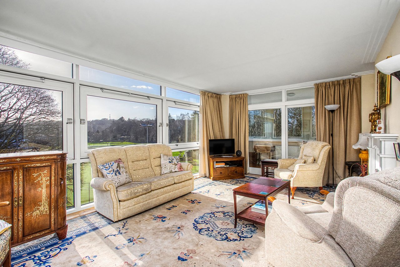 This spacious three-bedroom flat in a sought-after development enjoys a peaceful setting surrounded by landscaped grounds and spectacular panoramic views. The bright interiors include a generous living room with a wall of windows and access to an adjoining sunroom, creating a superb space for relaxing or entertaining. A separate dining room sits beside the breakfasting kitchen, while three double bedrooms, excellent storage, and a practical wet room with shower provide comfortable accommodation. Ravelston Heights benefits from lift access, beautifully maintained communal gardens, with excellent amenities and transport links nearby. A secure private garage and store cupboard are also located in the building.
