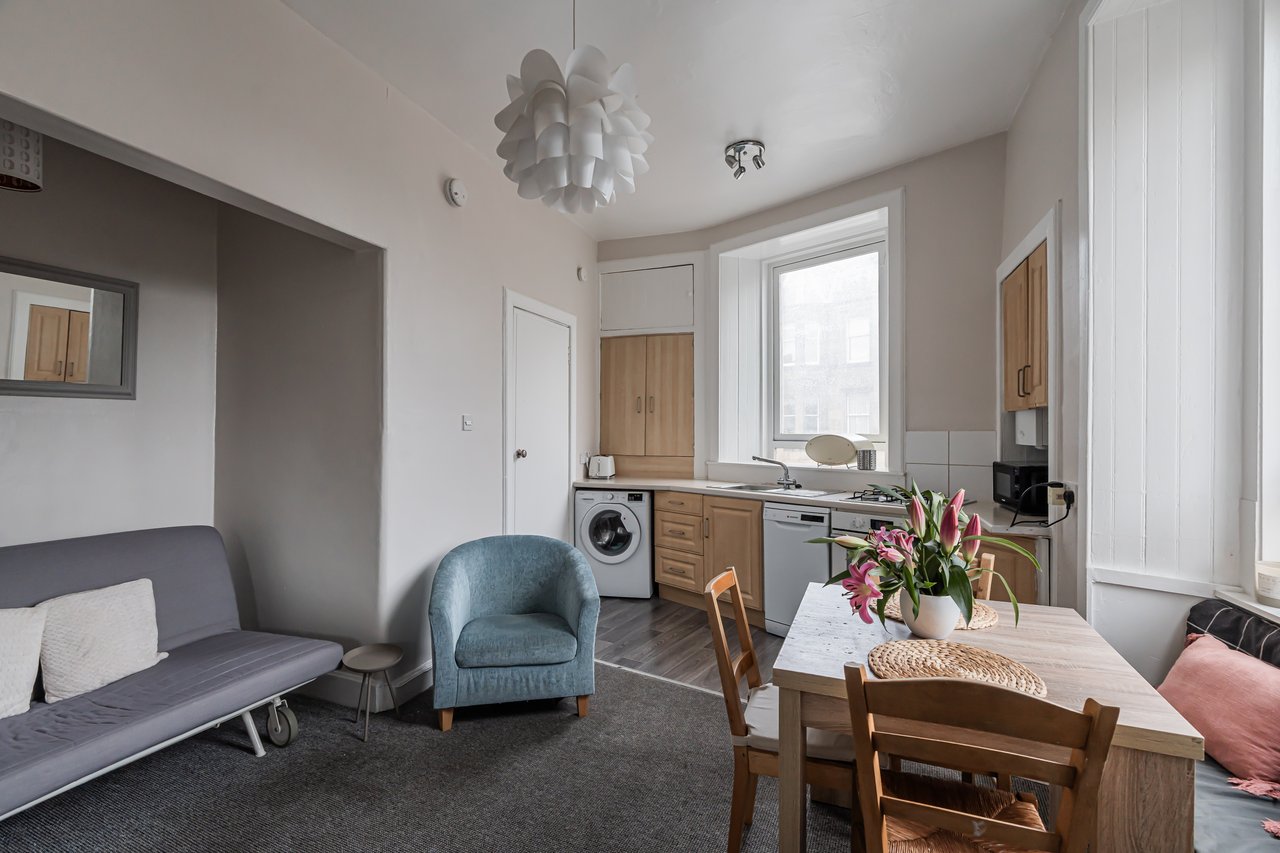 This bright and well-presented third-floor flat offers a well-balanced layout comprising two double bedrooms, a stylish open-plan living/kitchen/dining room, and a modern bathroom. The flat is ideal for professionals, couples, or as an investment in the vibrant Stockbridge area of Edinburgh with benefits including gas central heating, double glazing, and a communal garden.