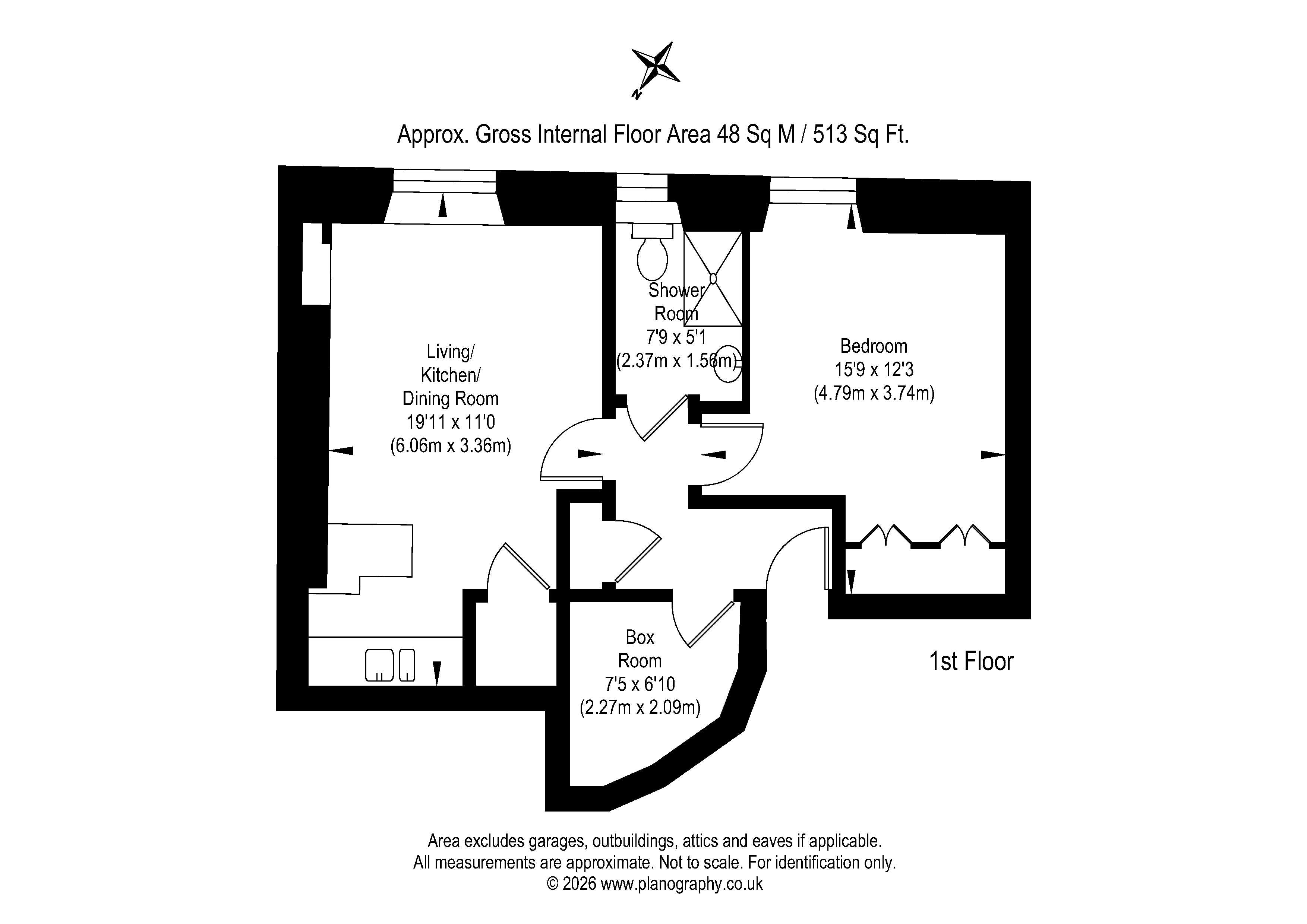 The accommodation comprises a welcoming hallway with useful boxroom off, a bright open-plan living/kitchen/dining room, a spacious double bedroom with excellent storage, and a modern shower room. The property benefits from excellent natural light and a highly convenient central location, with a wide range of amenities and transport links within easy reach. Additional benefits include gas central heating, double glazing, and communal garden to the rear.