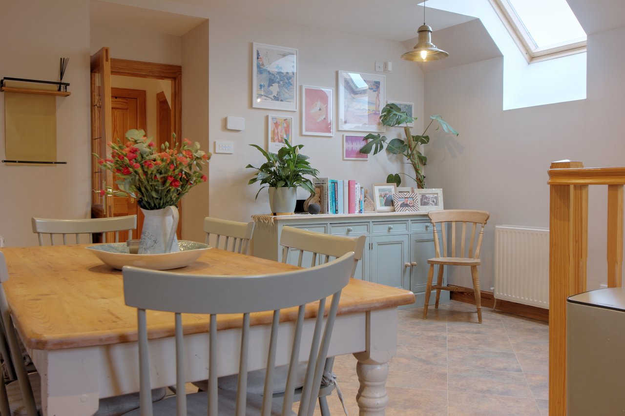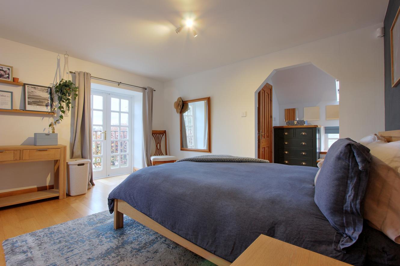 Accommodation: Approached via the original mill lade and passing the beautifully restored water wheel, the front door opens into a welcoming ground-floor lobby. From here, doors lead to a spacious double bedroom and a versatile shower room/utility. A staircase rises to the first floor, where a bright and airy kitchen-dining space awaits, complete with a multifuel Rangemaster and ample room for a large dining table seating eight or more. Beyond the kitchen lies a generous lounge featuring exposed beams and original mill workings, which flows into a sun-filled garden room offering panoramic views. Two further double bedrooms open onto recently refurbished timber balconies through elegant French doors. The principal suite boasts an en-suite shower room and dressing area, while the second bedroom benefits from an en-suite WC. Completing this level is a stylish bathroom with a roll-top bath and a separate shower. The Barley Mill, accessed from the front lobby, is a highly versatile annex that can be seamlessly integrated into the main accommodation or used independently as a self-contained unit—ideal for holiday lets, a guest suite, or Airbnb. This charming space includes a spacious sitting room with distinctive arrow-slit windows overlooking the original gearing house, a well-equipped dining kitchen with integrated appliances and its own rear access, plus two generously sized double bedrooms, each with en-suite facilities.