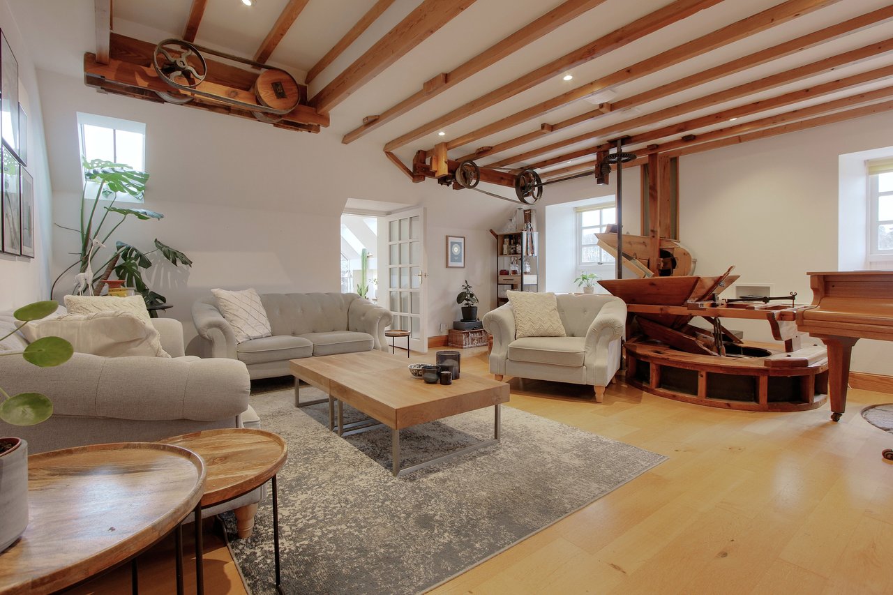 Longhill Mill, incorporating The Barley Mill, is an exceptional Grade ‘A’ listed former mill house which has been thoughtfully converted into a truly beautiful home. Nestled in a highly sought-after location to the north of Lhanbryde, on the edge of the historic Innes Estate, the property enjoys a tranquil rural setting surrounded by rolling farmland, while remaining easily accessible to the village, the A96, and the stunning Moray coastline. Dating back to 1733 and rebuilt after a fire in 1891, the mill underwent a sympathetic and comprehensive conversion in 2003, resulting in a residence that perfectly blends period character with modern comfort. The current owners have continued to upgrade the property and add their stylish touch whilst retaining original features such as exposed timber beams, grain hoppers, and millstones, continuing to create a home rich in history and charm. The Barley Mill annex has operated as a thriving business for the past five years, attracting numerous repeat bookings and building a loyal customer base.