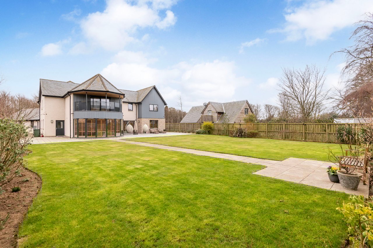 Set within the prestigious Elie Estate, Scottcraig House is an exceptional contemporary residence, thoughtfully designed to blend modern Scottish architecture with outstanding craftsmanship and eco-efficient performance. Completed in 2017 by Andrew Davie Homes, this bespoke home offers five beautifully appointed bedrooms, six bathrooms and a carefully curated layout extending over two levels.