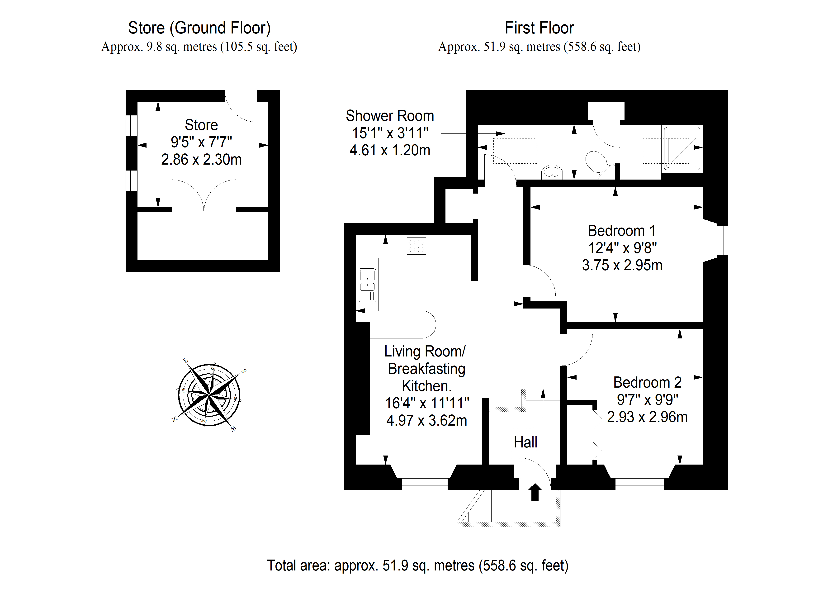 Two double bedrooms (one with built-in storage)
