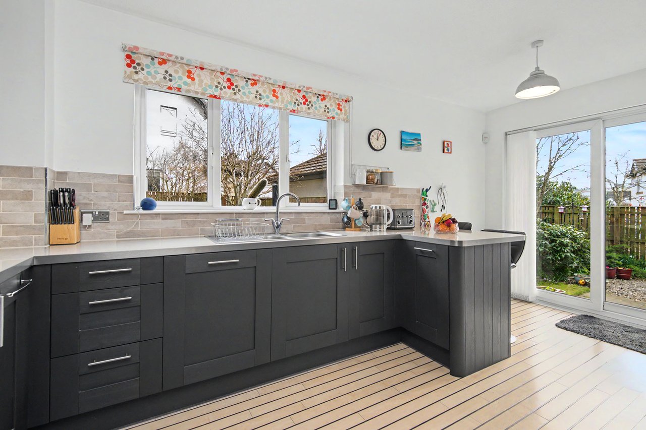 Set within a peaceful cul-de-sac in Forfar, thisdetached home is perfectly suited to family living, offering generous space and a flexiblelayout. The property features multiple reception areas, including a living room with alog burner, a dining room, and a separate family room, alongside an ultra-modern kitchen with contemporary cabinetry, qualitycounters and handy downlighters. Four well-sized bedrooms, including a principal suite with en-suite, and a stylish bathroom with towel warmer, and a guest WC, provide comfortable accommodation for growing families. Outside, mature gardens create a safe space for children to play, while a paveddouble driveway and garage offer ample parking.