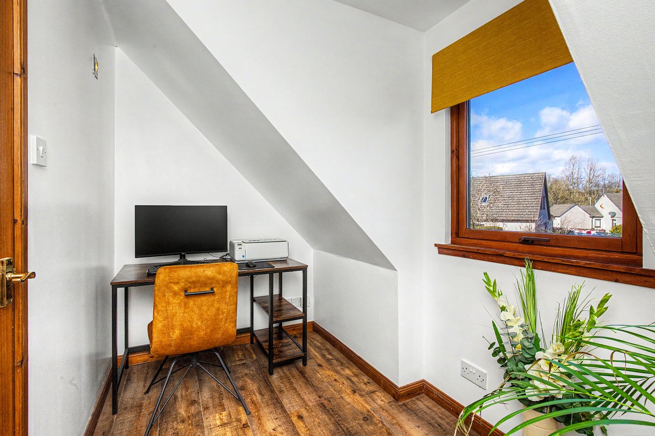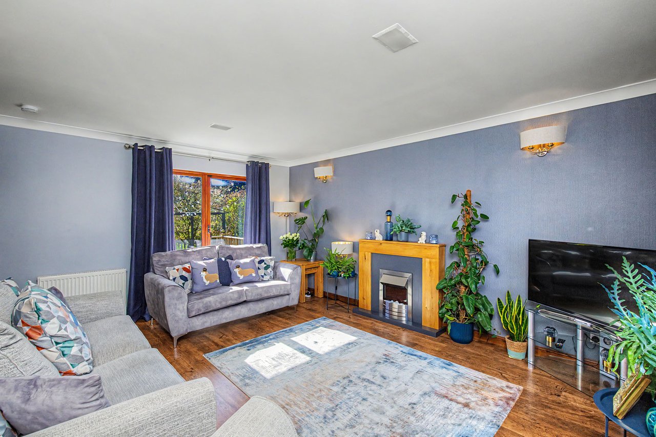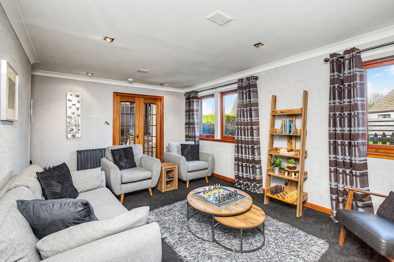 This attractive semi-detached home occupies a corner plot in an established residential setting in Finavon, offering spacious and versatile family accommodation. The property opens with a hall with a storage cupboard and a guest WC, leading to a sunny living room with patio doors, a sitting room, and an open-plan kitchen/dining area with utility room, as well as a comfortable principal bedroom with a built-in mirrored wardrobe and an en-suite shower room. Upstairs, the home features three further bedrooms with storage, an office, and a four-piece bathroom with freestanding tub. Externally, there are private gardens with a deck and seating areas, along with a private driveway and garage. Extras: All fitted floor and window coverings, light fittings, and integrated appliances are included.