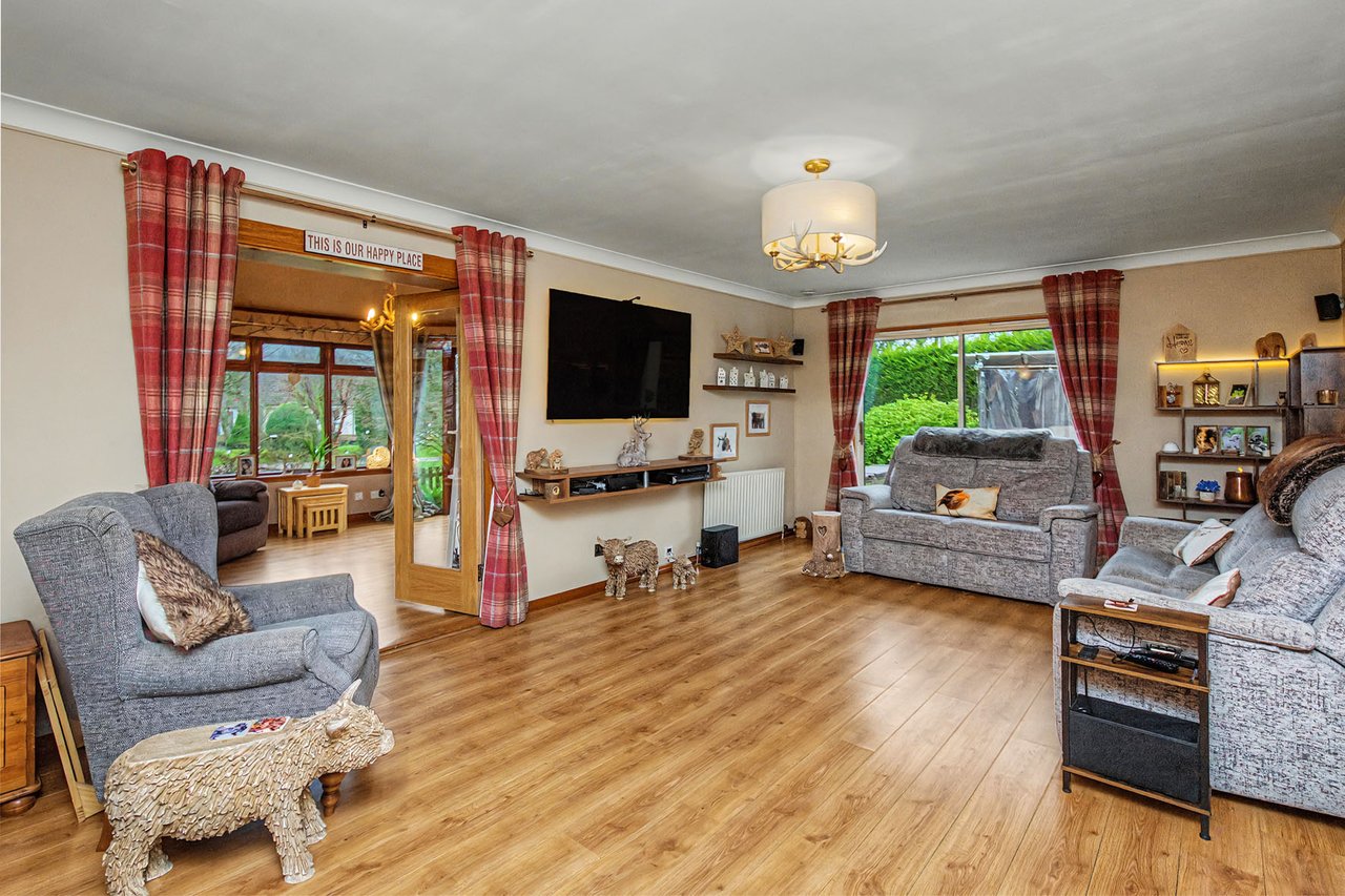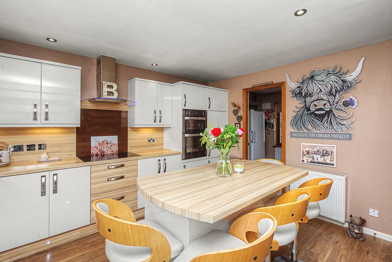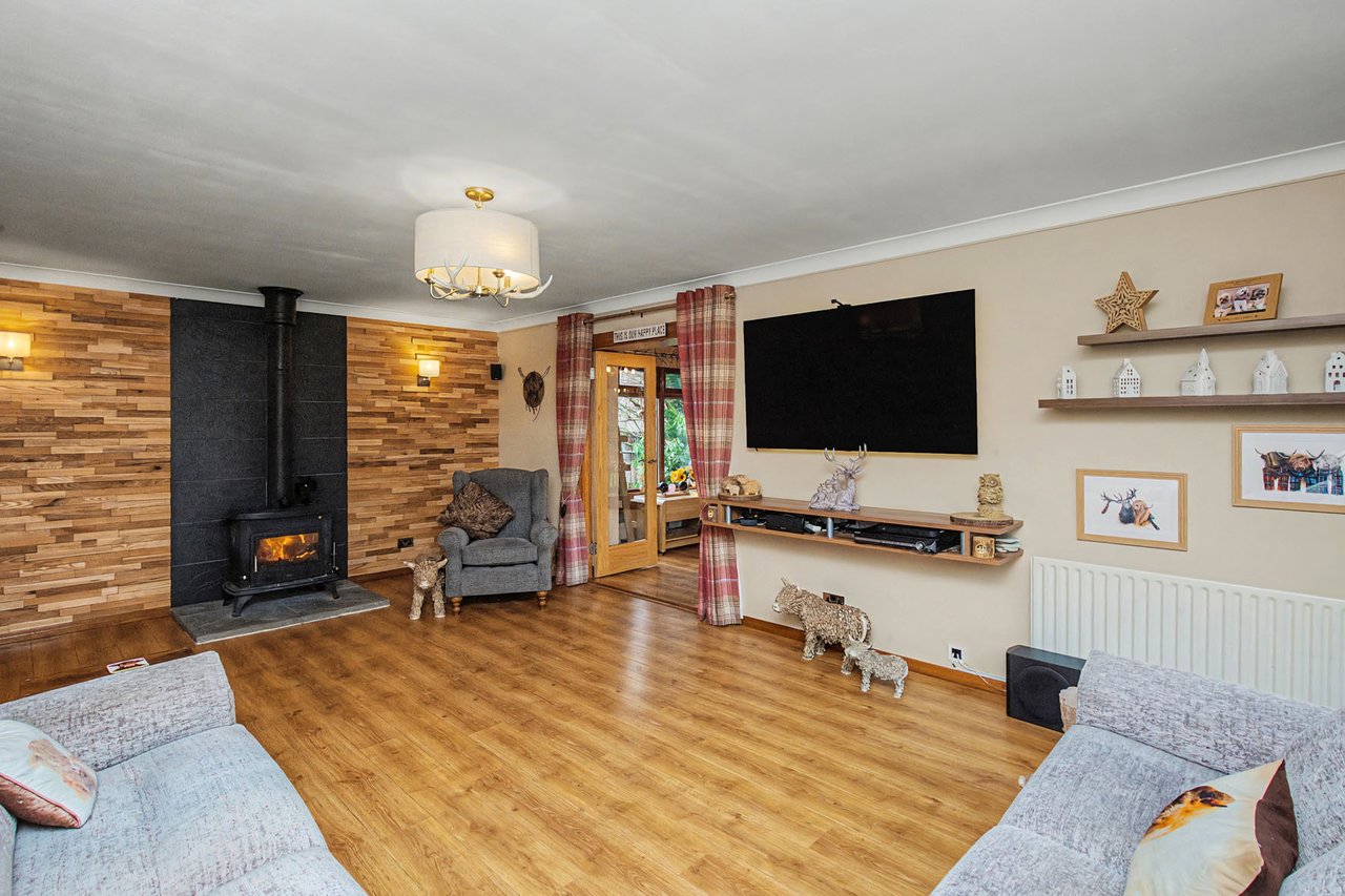 Introducing a charming detached 4-bedroom home set in the peaceful village of Finavon, offering a wonderful balance of rural tranquillity and convenient access to nearby towns such as Forfar and Brechin, and easily commutable to Dundee and Aberdeen. This property features a cosy living room with a log burner, and a bright sunroom with French doors. A modern breakfasting kitchen with a utility room complements four versatile bedrooms, including a sunny principal bedroom with fitted wardrobes and an en-suite shower room, plus a family bathroom and a WC/cloakroom. Outside, the property enjoys private gardens with a shed, a summer house, and an outbuilding with a hot tub, a multi-car driveway and a double garage.