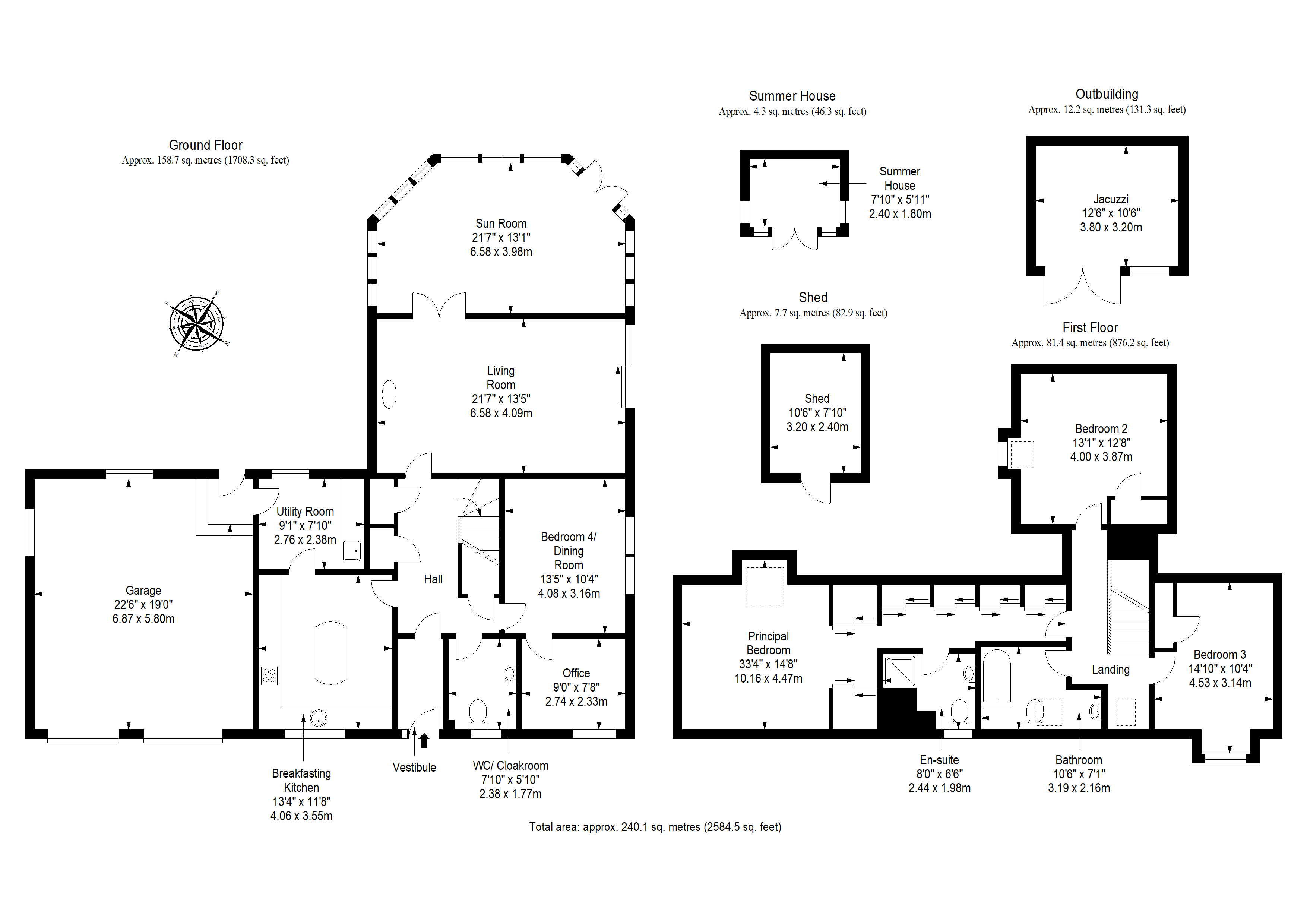 Private gardens, summerhouse & outbuilding with hot tub
