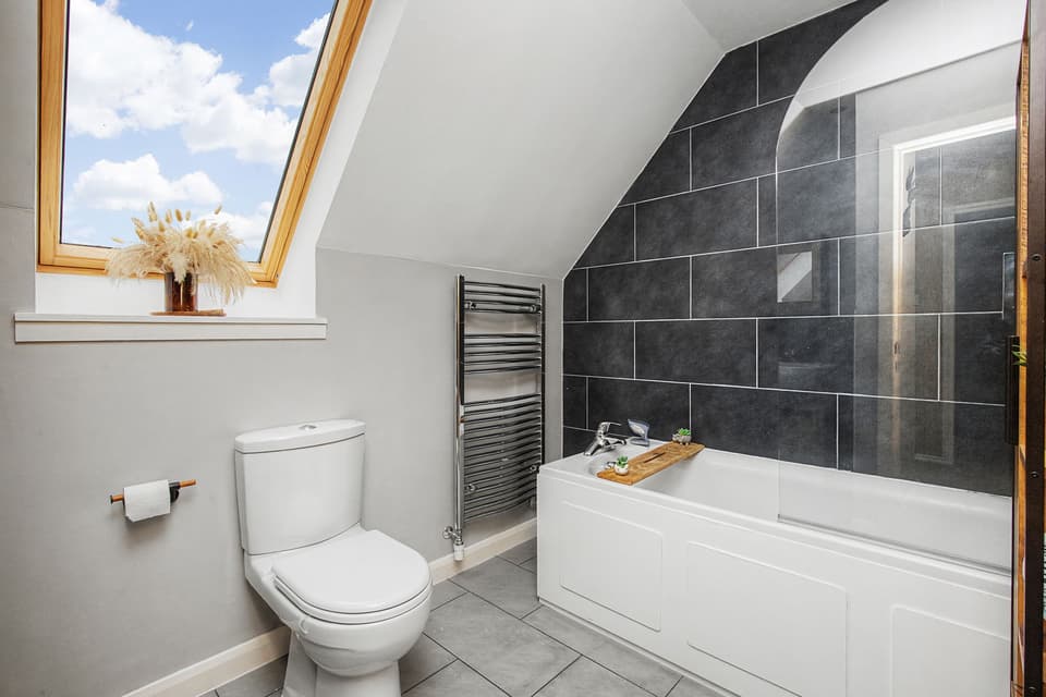 Family bathroom with towel warmer