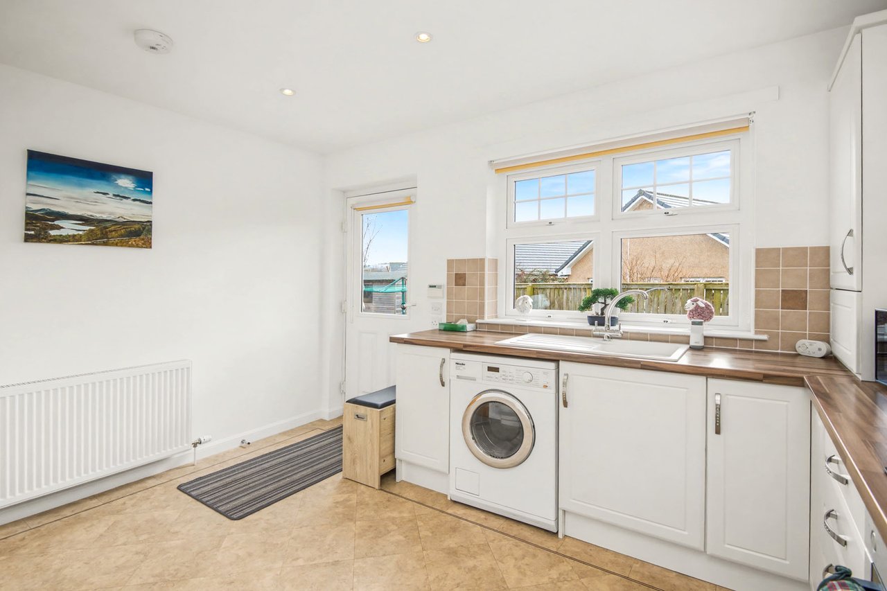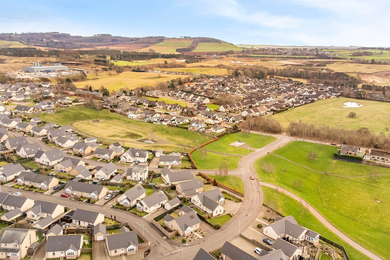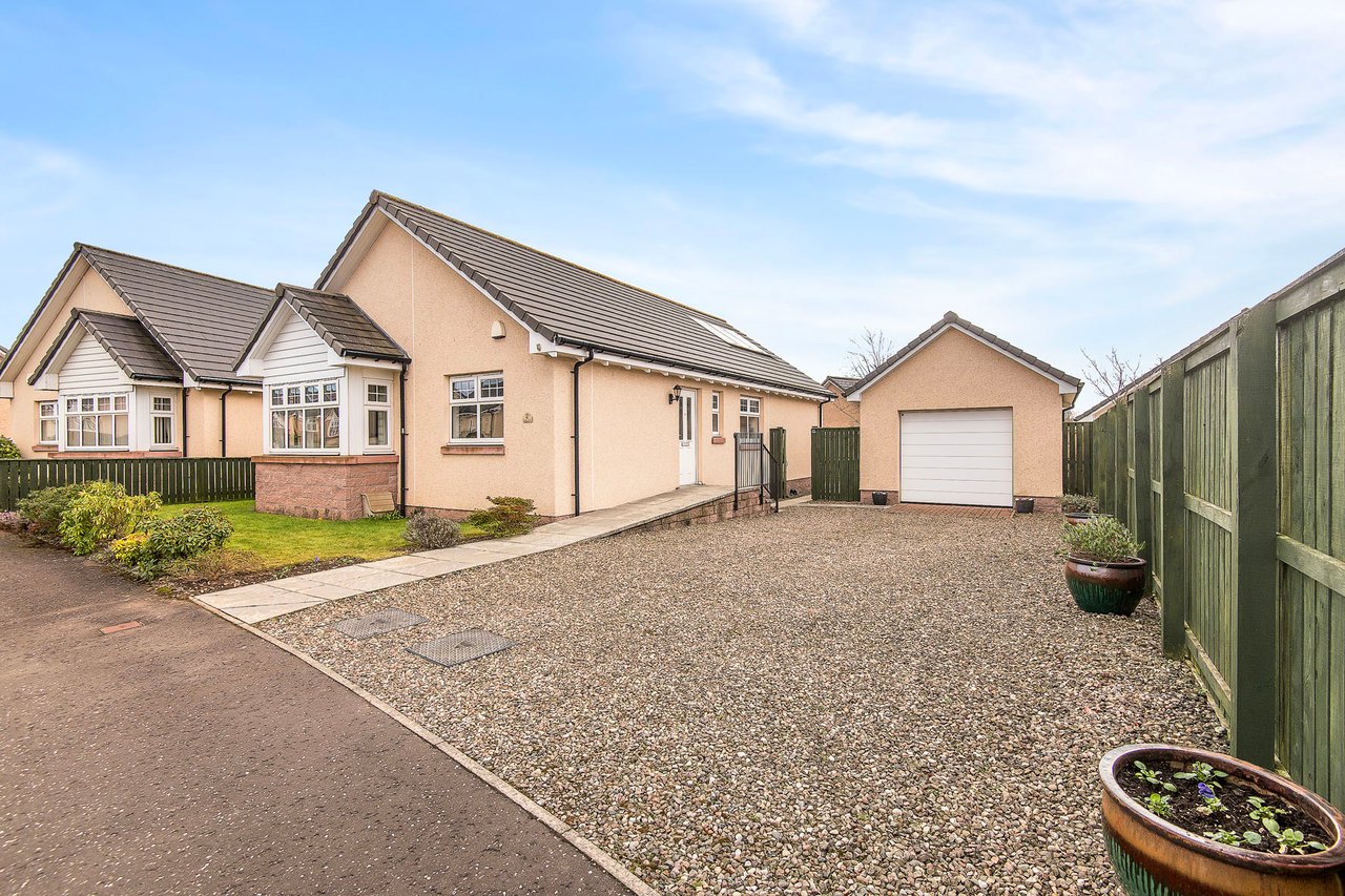 Enjoying a peaceful residential setting just a mile from the centre of Forfar, this modern detached bungalow offers spacious, tastefully presented family accommodation, complemented by a south-facing enclosed garden, a generous private driveway, and a detached garage. The bright, neutral interiors feature three double bedrooms, including a principal with fitted storage, a four-piece bathroom, a second handy WC, a reception room with an inviting living-flame fire, and a sunny breakfasting kitchen opening onto the garden.