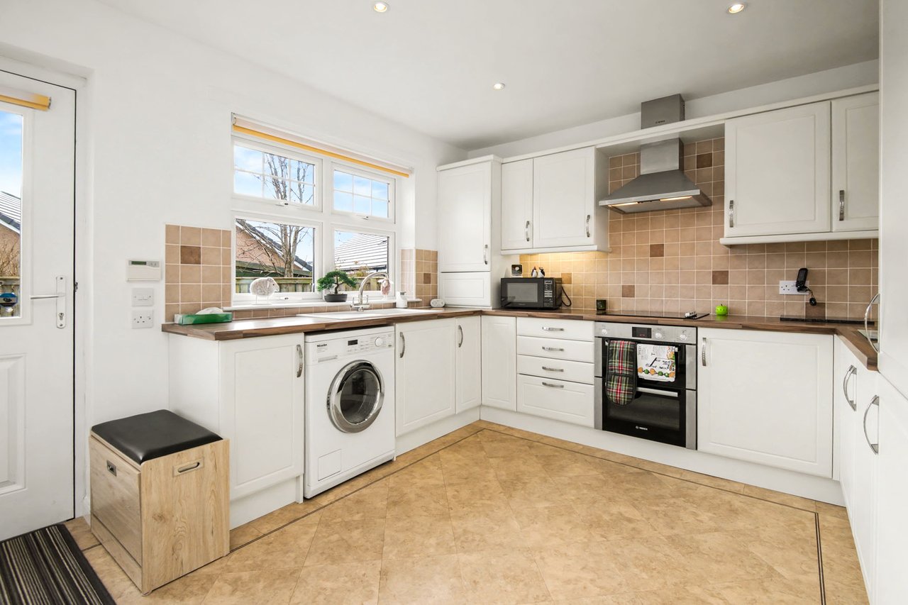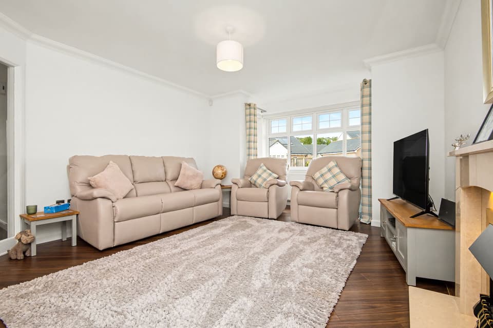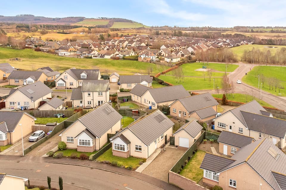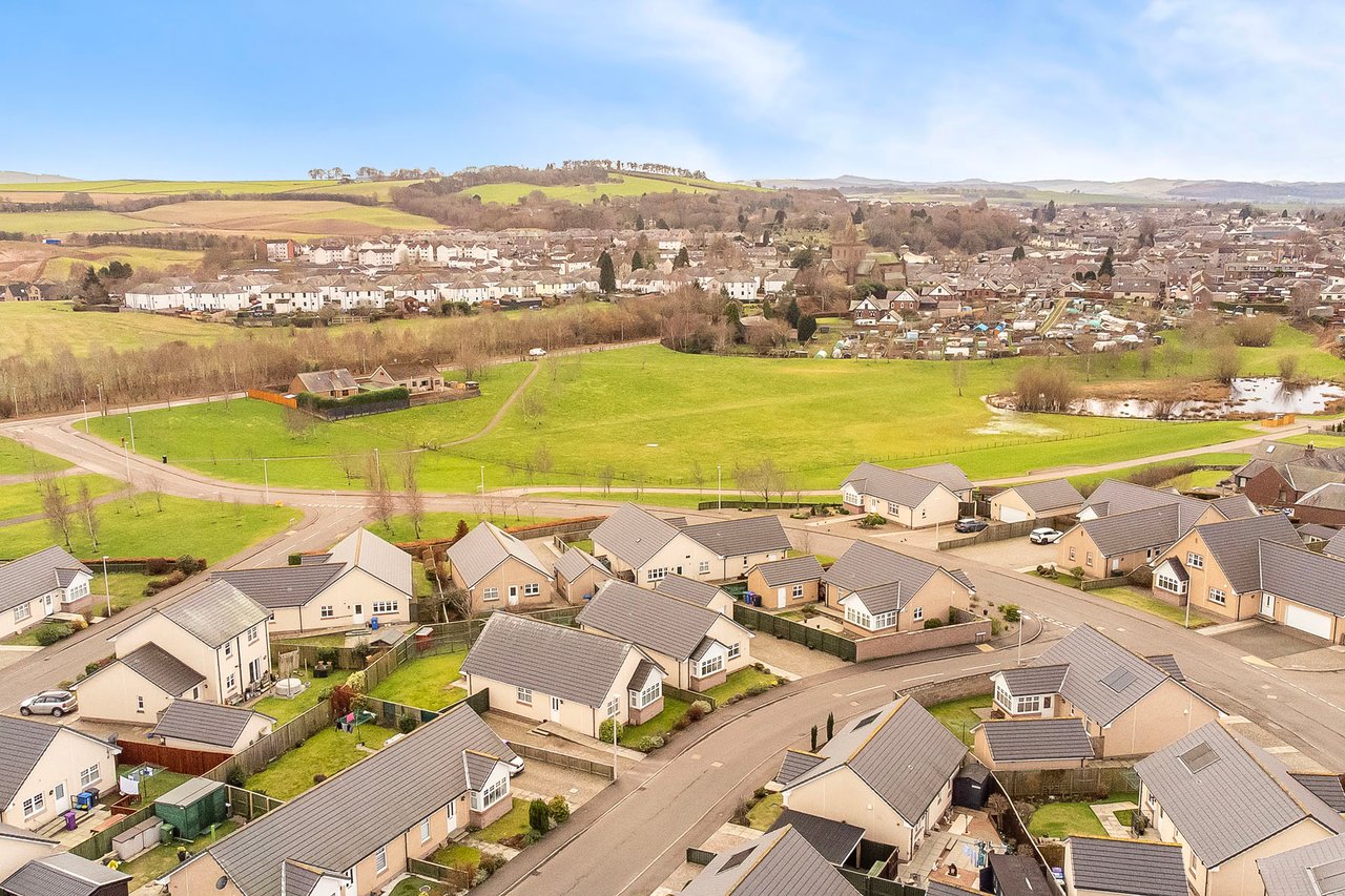 Enjoying a peaceful residential setting just a mile from the centre of Forfar, this modern detached bungalow offers spacious, tastefully presented family accommodation, complemented by a south-facing enclosed garden, a generous private driveway, and a detached garage. The bright, neutral interiors feature three double bedrooms, including a principal with fitted storage, a four-piece bathroom, a second handy WC, a reception room with an inviting living-flame fire, and a sunny breakfasting kitchen opening onto the garden.