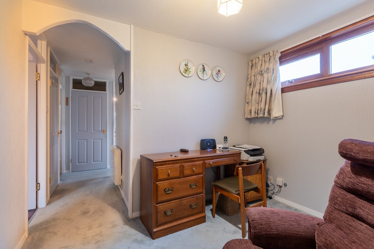 Thorntons are delighted to offer for sale 21 Restenneth Place, Lunanhead, an appealing home situated in a peaceful cul-de-sac within the sought-after village of Lunanhead, only a short distance from Forfar. This attractive two-bedroom semi-detached bungalow boasts bright and spacious accommodation throughout. Internally, the property comprises a welcoming lounge overlooking and with doors to access the front garden, a fitted kitchen, two generously proportioned bedrooms, a useful study area, and a shower room. The home further benefits from electric heating and double glazing. Externally, there is a neatly presented garden to the front and side, along with a single garage and a private driveway providing ample off-street parking. The fully enclosed rear garden offers a private and secure setting, ideal for enjoying outdoor living and entertaining.