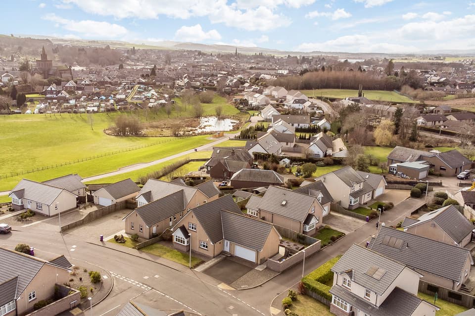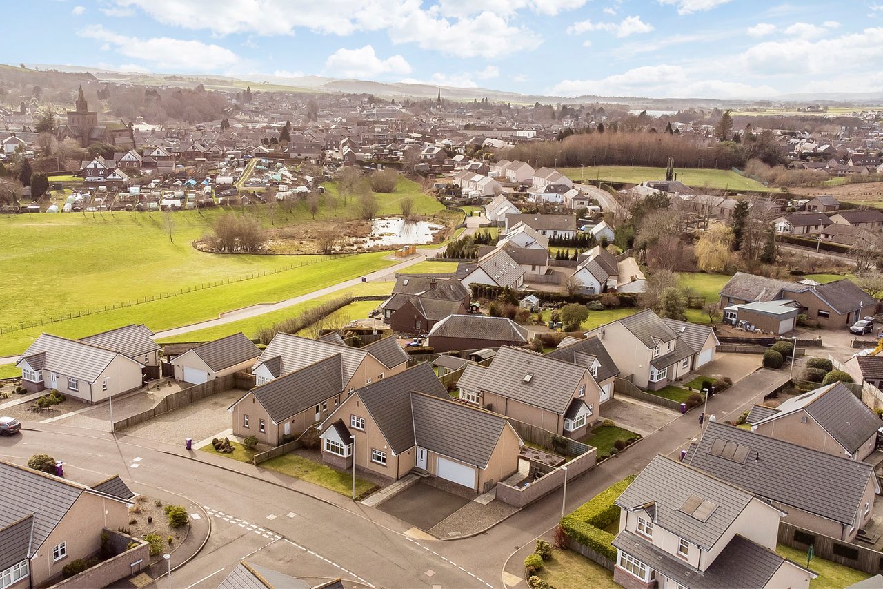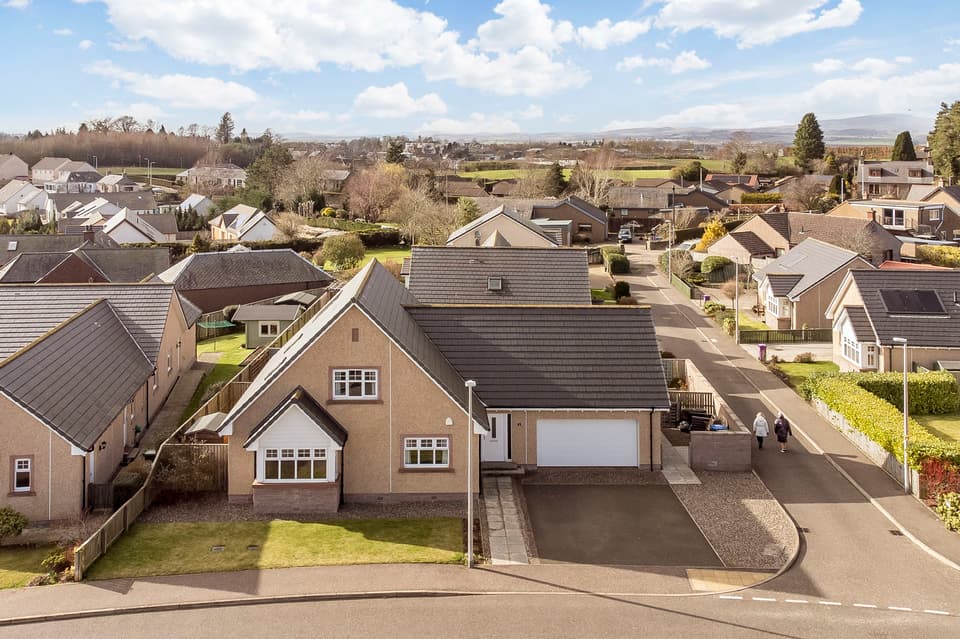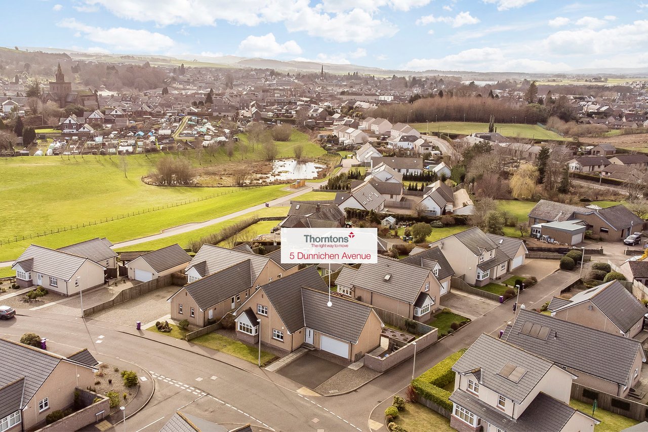 This substantial detached villa enjoys a peaceful residential setting in Forfar and offersgenerous, versatile accommodation ideally suited to modern family living, all within easyreach of local amenities, schooling, and transport links. The bright interiors include aspacious living room, a large open-plan dining/breakfasting kitchen with direct gardenaccess, a useful utility room, and a ground-floor bedroom or study with an adjacent shower room. Upstairs, three well- proportioned bedrooms include a principal with en-suite, alongside a four piece bathroom. Outside, the property is complemented by a generous private garden,an integral double garage, and a driveway providing ample parking.