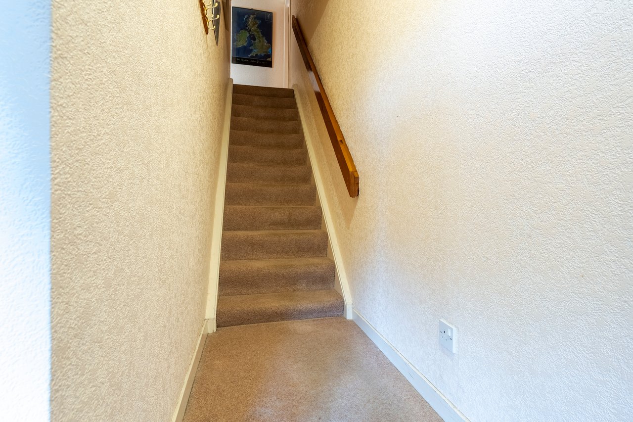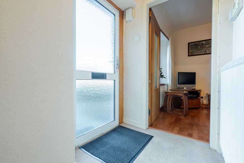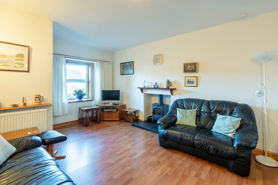Thorntons are delighted to bring to the market 6 Callander’s Cottages, Gowanbank, Forfar – a charming three-bedroom terraced cottage situated approximately 2 miles from Forfar town centre. The accommodation is arranged over two levels. The ground floor comprises a bright lounge with multi-fuel stove, bedroom one, a shower room (with comfort height toilet in keeping with the bars in the shower for accessibility), and a spacious dining kitchen with integrated oven, hob, extractor fan and dishwasher and a door providing direct access to the rear garden. A staircase leads to the first floor, where there are two further bedrooms along with additional attic storage.