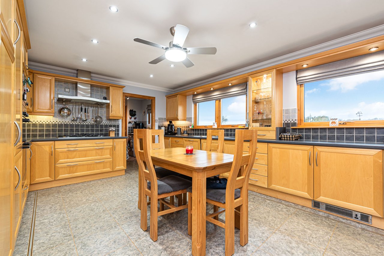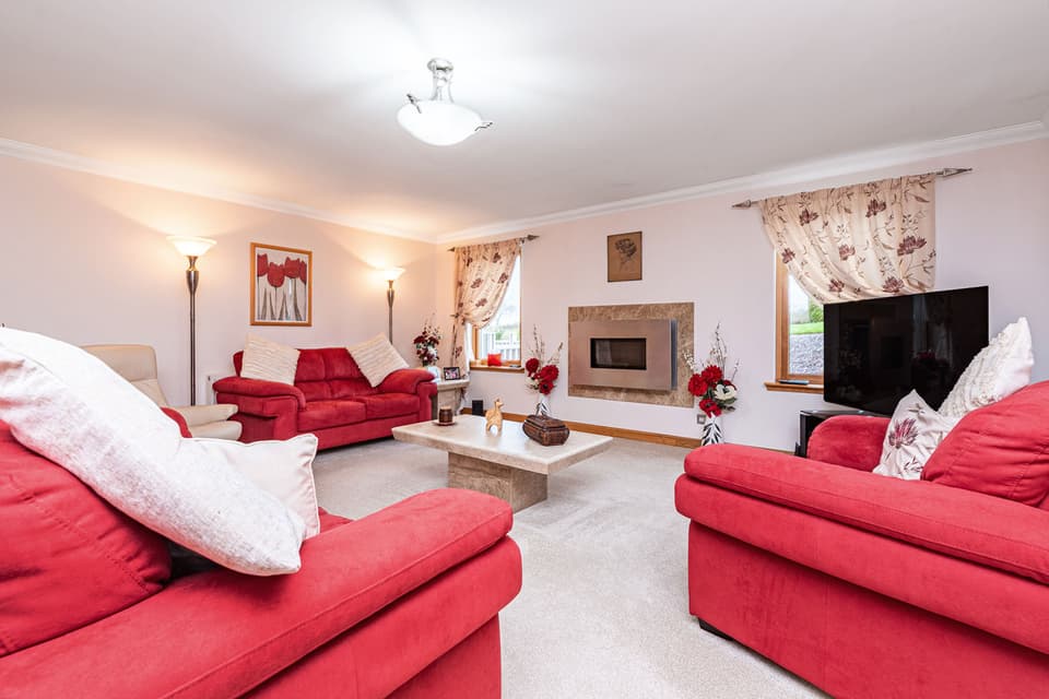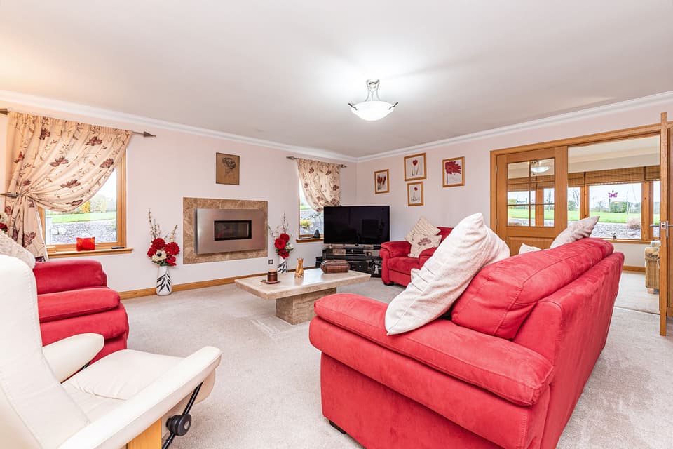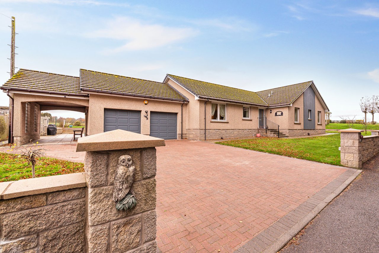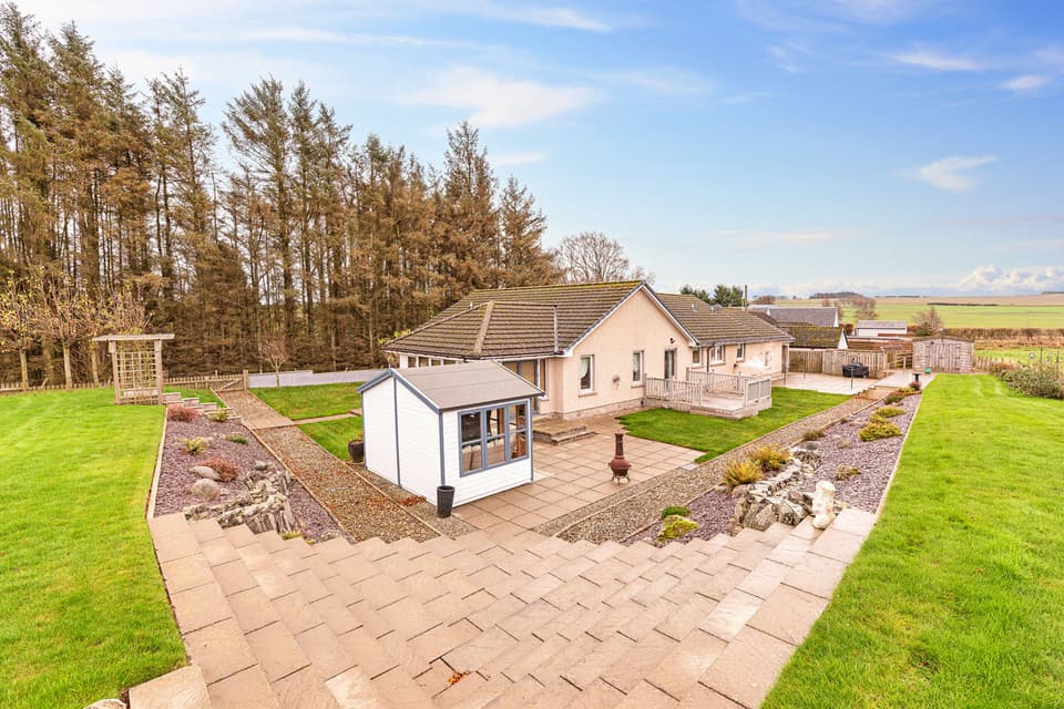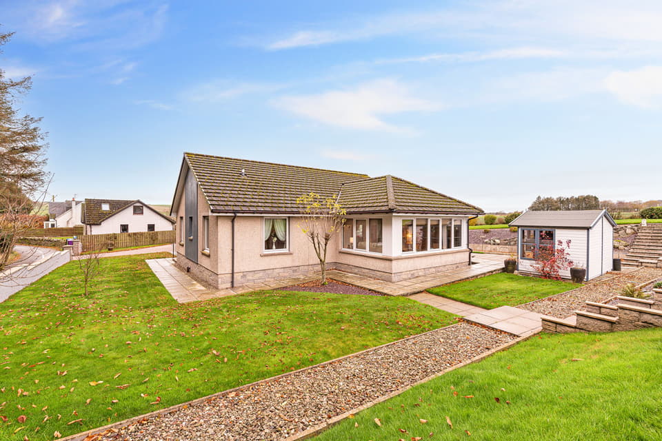 Nestled on a generous wraparound plot with immaculately kept gardens and exceptional private parking, this four-bedroom detached home enjoys a blissful rural position just a short drive from Forfar and coastal Arbroath, with Dundee also within easy reach in around 30 minutes. Designed for comfort, flexibility, and modern family living, the inviting interior features four double bedrooms – including a principal suite with its own private shower room – along with the option for a home office, three bright reception areas, a four-piece bathroom, a guest WC, a utility room with garage access, and extensive built-in storage.