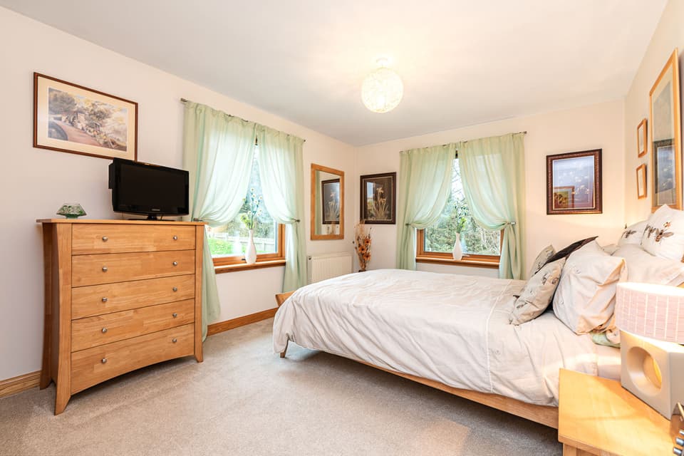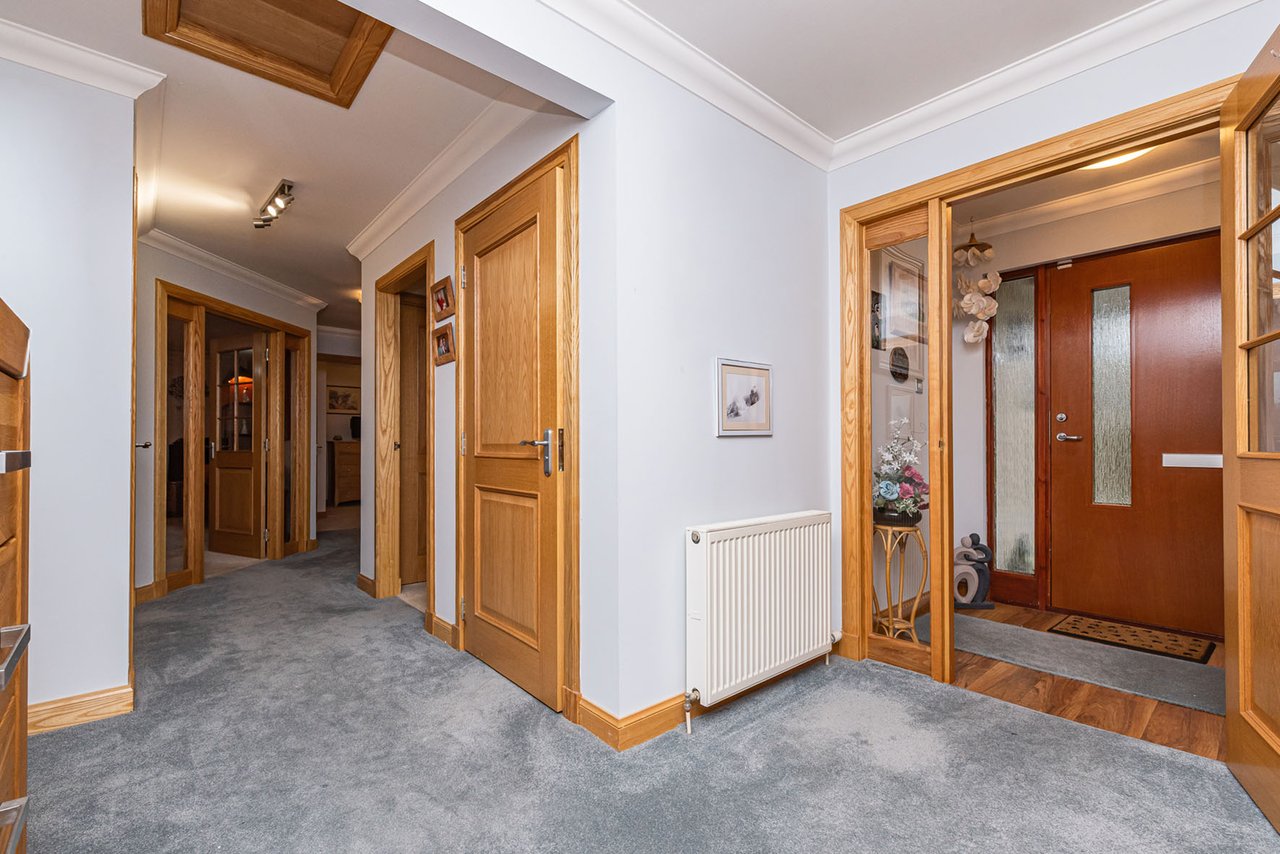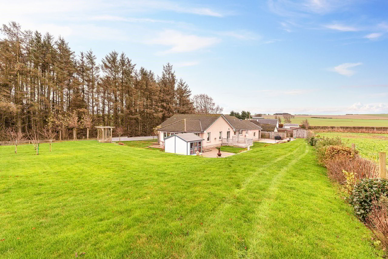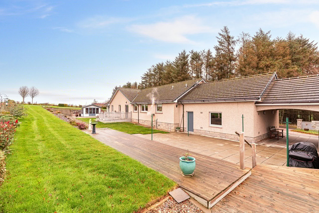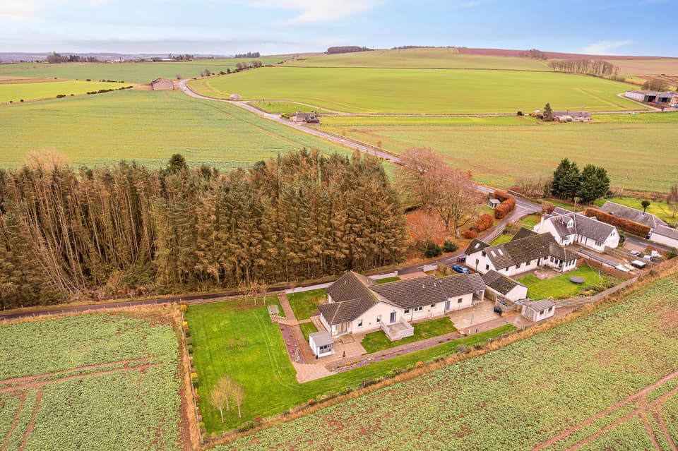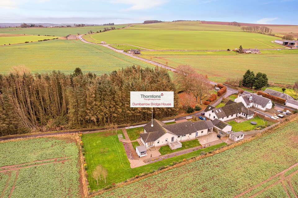Dumbarrow Bridge House forms part of a small residential community surrounded by unspoilt countryside, offering a peaceful rural lifestyle just five minutes from local amenities. The nearby village of Letham provides convenience shopping, a pub, and a primary school, with an excellent choice of further facilities available in both Forfar and coastal Arbroath, only 15 minutes away. Set over one level, the home showcases tasteful contemporary styling with subtle country character, complemented by warm natural wood finishes. Its immaculately landscaped gardens and unspoilt fields beyond create a serene backdrop, while the semi-rural setting provides privacy without isolation. A driveway, a carport, and an integral double garage provide ample private parking.