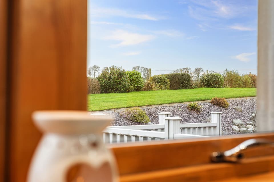 Blending seamlessly with the surrounding pastoral land, the landscaped wraparound gardens feature sweeping lawns, sunny decked and paved seating areas, and simple tiered planting. A timber summer house and a useful shed provide space for storage or sheltered relaxation, whilst a large mono-block driveway, a single car port, and an integral double garage with electric doors ensure plentiful private parking.