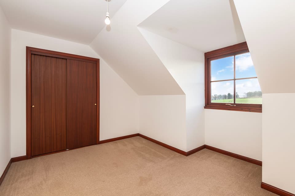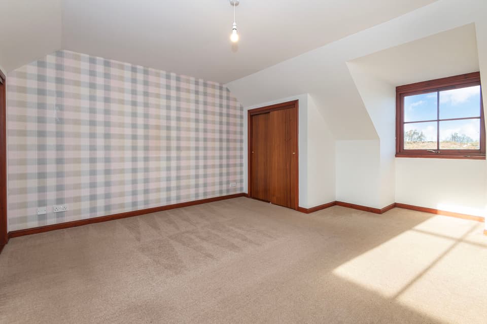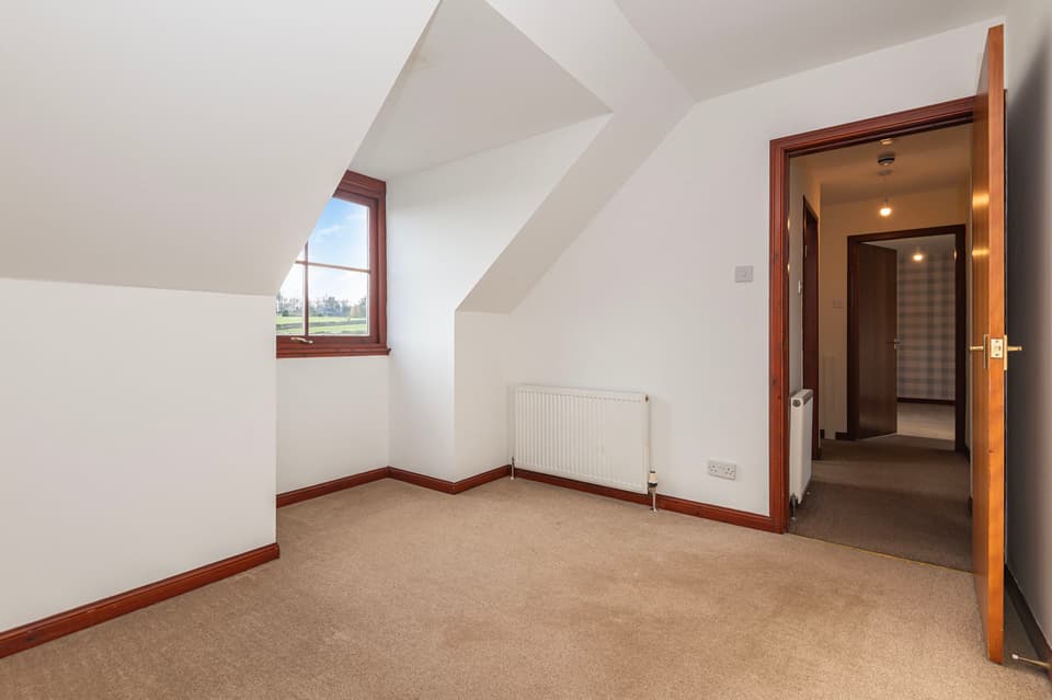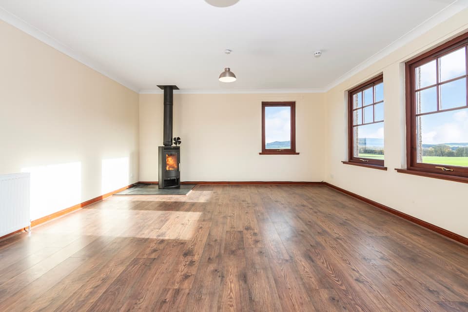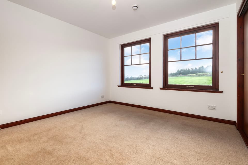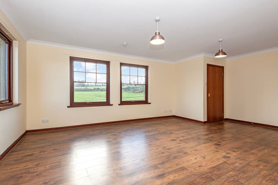 The approach to Turwhappie Cottage is nothing short of stunning, set amongst a backdrop of vibrant fields as far as the eye can see. It is an inspiring introduction which continues inside, whereupon you are greeted by a welcoming entrance vestibule. A haven for unwinding and socialising, the living room has expansive dimensions for a wide choice of comfy furnishings. Dual-aspect windows to the south and east bathe the room in a cascade of daily sun, whilst also capturing wonderful panoramic views of the enveloping countryside. It is a wonderful space that invites you to sit back and relax, the neutral décor and wood-toned floor further enhancing its elegant appeal.