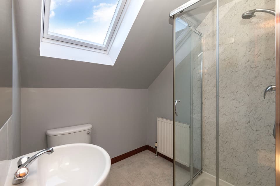 The five double bedrooms maintain the home’s refined styling, each enjoying neutral decoration and plush fitted carpets. For added practicality, all the bedrooms (except the fifth) come with built- in wardrobes as well, offering generous clothes storage. Providing the homeowners with the best, the first-floor principal bedroom has the largest footprint and dual-aspect windows, making the most of the country views which are even more impressive from this upper level. The remaining bedrooms ensure homeowners always have lots of versatile space at their disposal to meet life’s changing needs. The home is served by a ground-floor family bathroom, equipped with a toilet, a pedestal washbasin, an illuminated mirror, and a bath with an overhead shower. In addition, there is the principal bedroom’s en-suite, as well as a separate WC both located on the first floor for convenience. For year-round comfort, the property has oil-fired central heating and double glazing.