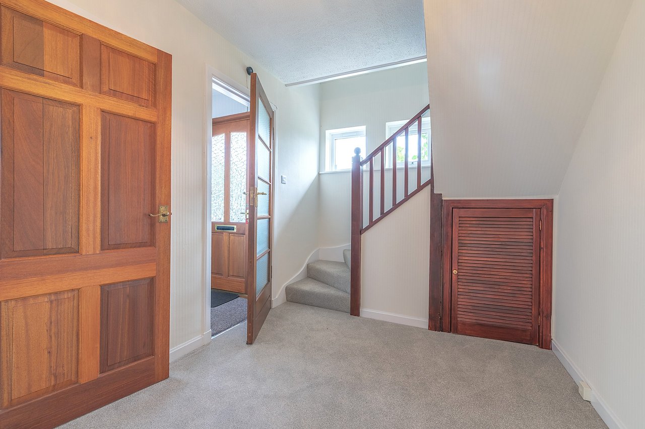 Inside, the accommodation has a welcoming entrance porch leading into a hallway. The bright and airy sitting room, complete with a square bay window and a feature open fireplace. The fitted kitchen includes an integrated oven, hob, extractor fan, and a separate dishwasher, all included in the sale. A formal dining room with ample space for a large table flows seamlessly into a cosy family room, which opens out to the rear garden via patio doors. The ground floor also offers a comfortable double bedroom, a practical utility area, and a convenient WC. Upstairs, you’ll find two further well-proportioned double bedrooms and a spacious family bathroom featuring both a bath and a separate shower. Storage is plentiful throughout, with two hall cupboards, fitted wardrobes in two bedrooms, and loft space. The property benefits from gas central heating and double glazing throughout.