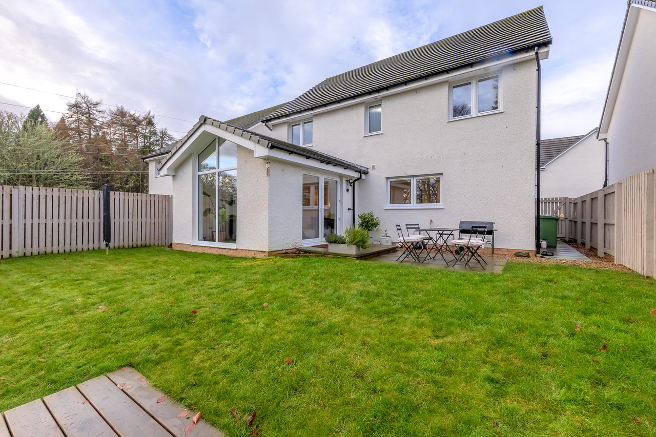 Discover this stunning detached villa, perfectly positioned within the exclusive and newly established Ruighard Place in the Great Glen development of Inverness. Built by Robertson Homes in the highly sought-after ‘Ivory Garden Room’ design, this immaculate property is in walk-in condition. The home boasts a contemporary interior with a neutral palette and high-quality finishes throughout. The thoughtfully designed layout offers both style and functionality, ideal for modern family living. The welcoming lounge is filled with natural light through large front-facing windows. At the heart of the home, the impressive open-plan kitchen/dining area with garden room is perfect for everyday living and entertaining. The modern fitted kitchen features generous storage, ample worktop space and premium Smeg integrated appliances, including double oven, multi-zone induction hob, extractor, self-defrosting fridge/freezer and dishwasher. The dining area offers generous space, easily accommodating a large table for up to eight guests, and flows seamlessly into the bright cathedral roofed garden room overlooking the private rear garden and woodland beyond. Additional ground floor highlights include a newly fitted utility room with convenient WC. Upstairs, you’ll find four generously proportioned double bedrooms and elegant bathroom. The spacious Principle Suite boasts a modern en-suite shower room and double fitted wardrobes. Bedroom two offers fitted storage and sharing a Jack & Jill shower room with bedroom three, makes it ideal for guests or children. Excellent storage solutions including warm airing cupboard shelving enhance the home’s practicality. The South-West facing rear garden is fully enclosed with double fencing and backs onto tranquil woodland, offering privacy and a peaceful outlook. Mainly laid to lawn it is complemented by both a patio and decked area—perfect for outdoor dining and entertaining. A block-paved driveway provides parking for two vehicles and leads to the integral garage. This beautiful family home will appeal to discerning buyers seeking a contemporary, high-quality property in a prime location. Early viewing is highly recommended.