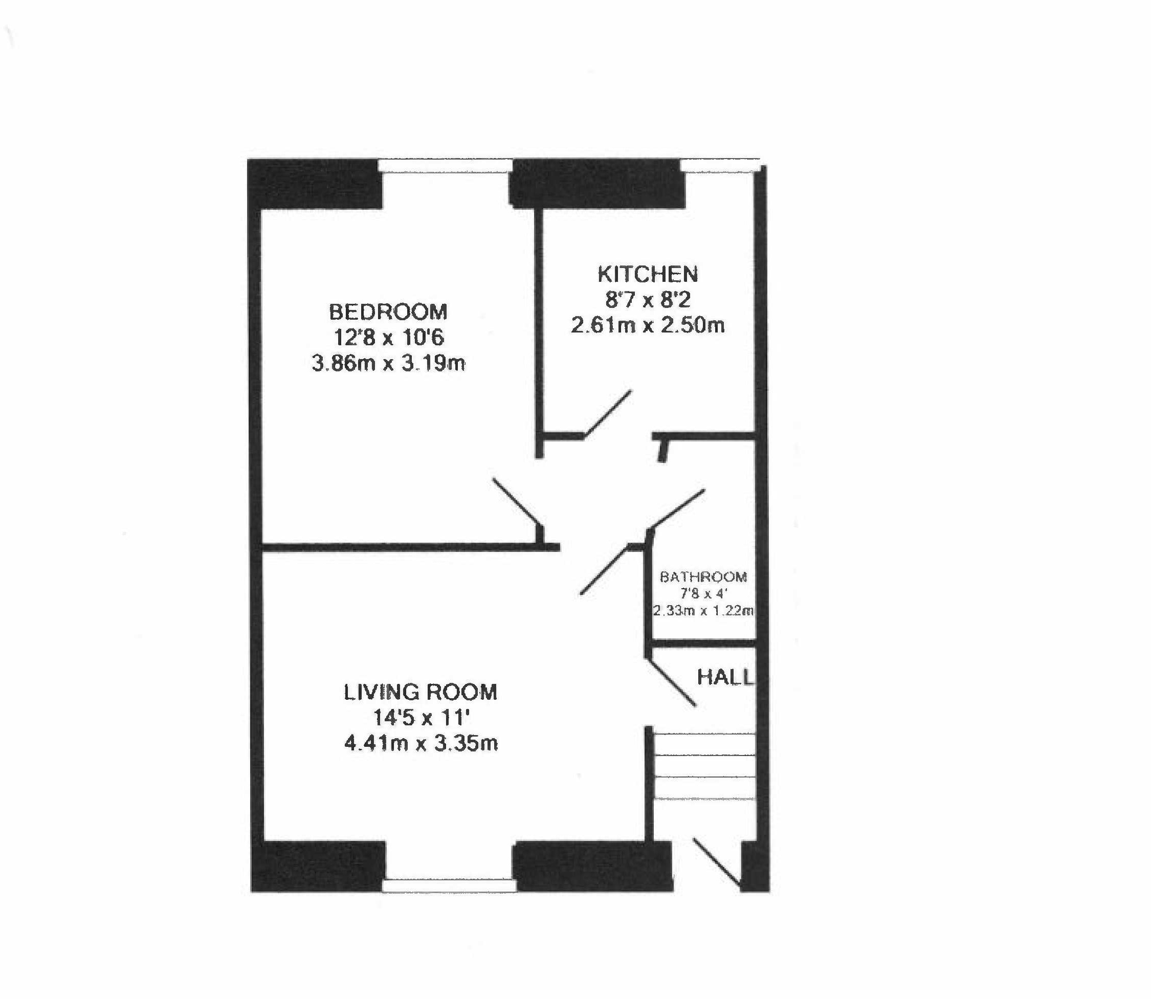 - Kitchen: 2.61m x 2.50m (8' 7" x 8' 2")