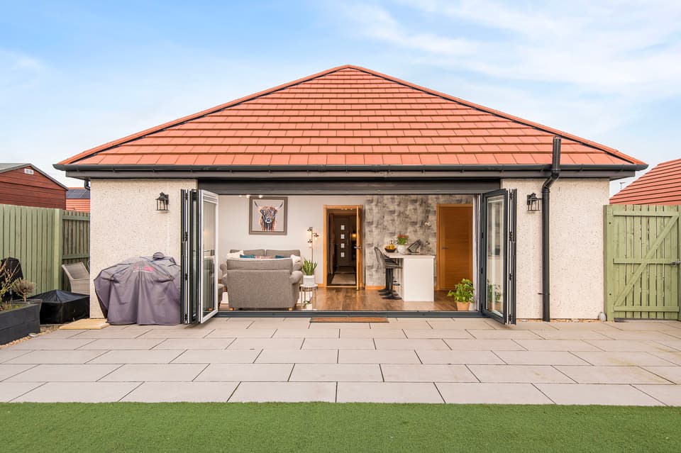 Tri-folding doors opening to the rear garden