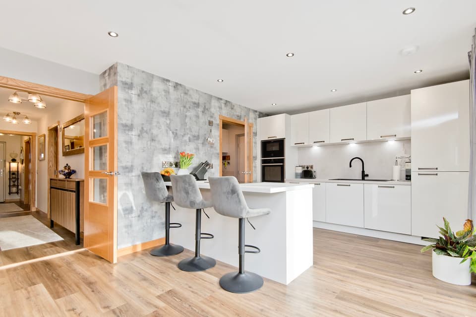 Integrated kitchen with fitted breakfast bar