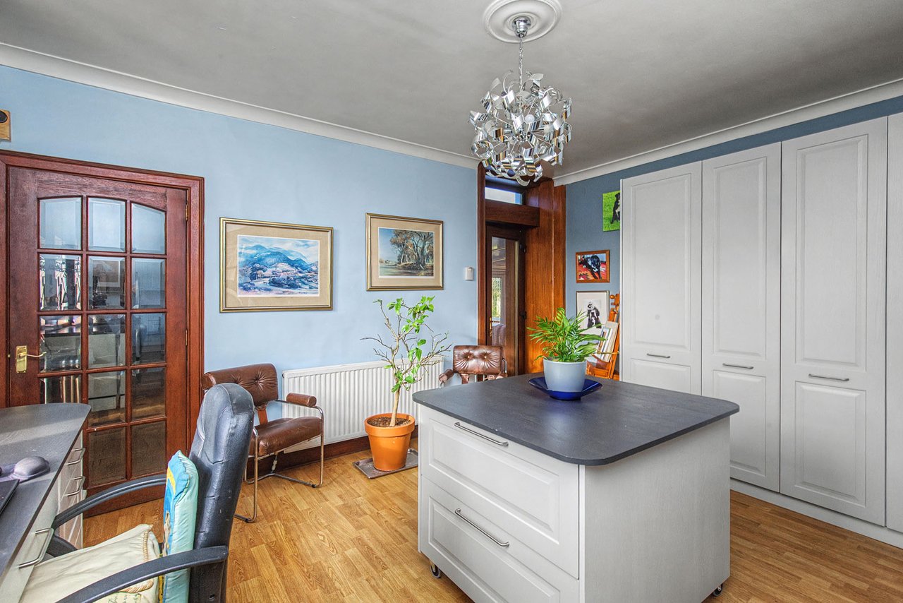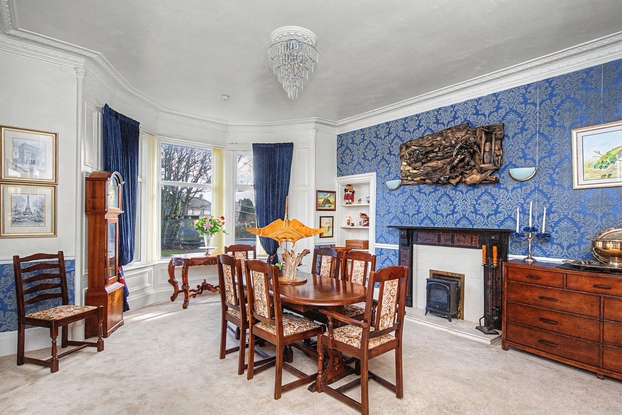 91 Normand Road is a substantial and characterful traditional stone-built detached villa, occupying a generous plot within the sought-after coastal village of Dysart. Dating from the late Victorian era, the property retains a wealth of original features including ornate cornicing, ceiling roses, deep skirtings, timber panelled doors and impressive bay windows, while offering flexible family accommodation formed over two levels.